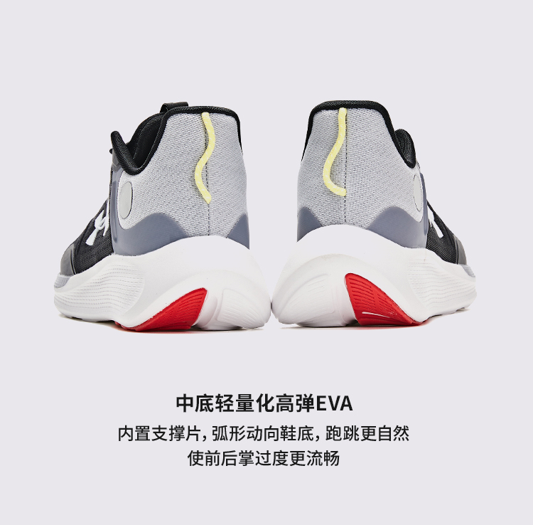 ①中底使用弹性TPU支撑片,弧形动向的鞋底 使前后掌过渡流畅,跑跳轻盈自然
