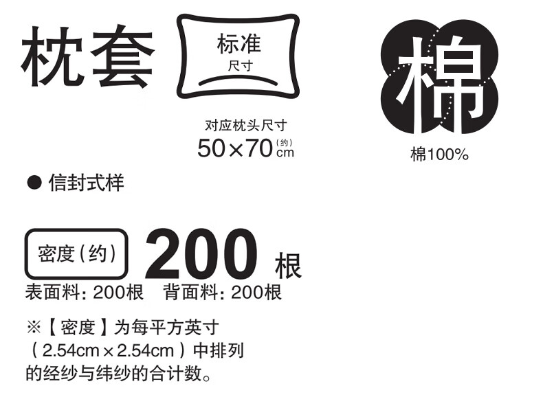 NITORI宜得利家居 100%全棉单人枕头套无芯 纯棉长方形纯色枕套 帕莱特