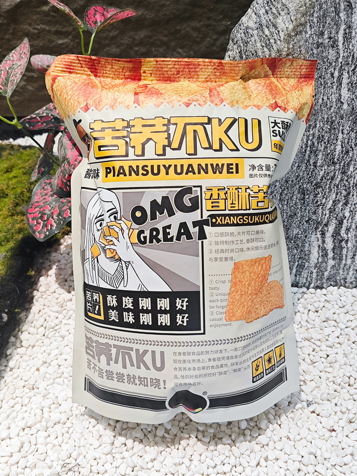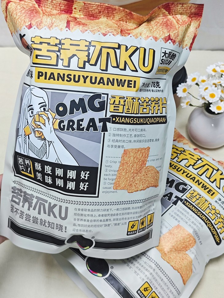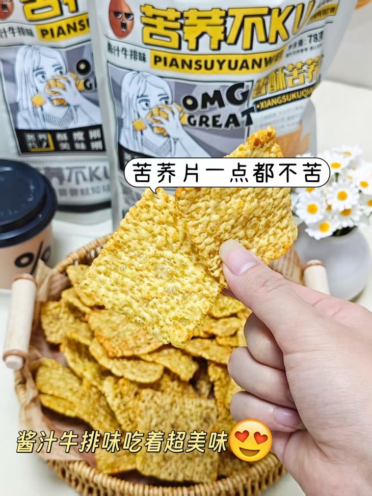 追剧总忍不住想吃点啥?这款香酥苦荞片就是你的 “追剧搭子”! 📺 浓郁的酱汁牛排味一吃就上头, 🥩 酥度刚刚好,不会因为太硬硌得腮帮子疼,也不会一拿就碎, 每一片都完整裹满调味料,嚼着超入味~ 配料里的苦荞粉带来淡淡的谷物香,搭配小麦粉和食用玉米淀粉,口感更有层次, 独特制作工艺让美味更持久,不知不觉就能炫完一大包,根本停不下来!😜