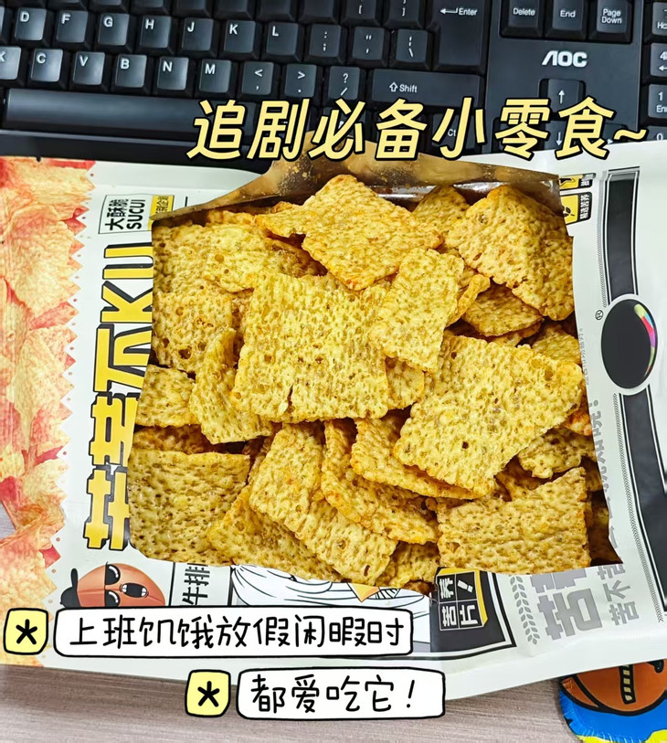办公室解馋零食天花板来了! 就是这款香酥苦荞片!👩 💻 平时工作累了,拆开一包, 浓郁的酱汁牛排味瞬间唤醒活力, 🥩 酥度把控得刚刚好,不会掉渣弄脏桌面,吃起来超方便~ 配料里的苦荞粉可是好东西,搭配小麦粉和食用玉米淀粉,口感更丰富, 还有食用植物油带来的醇厚香气,独特制作工艺让美味更持久,同事尝了都追着要链接!🔗