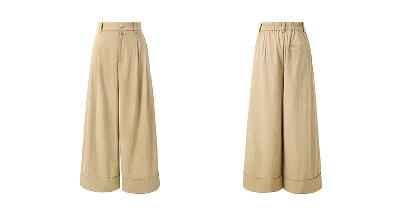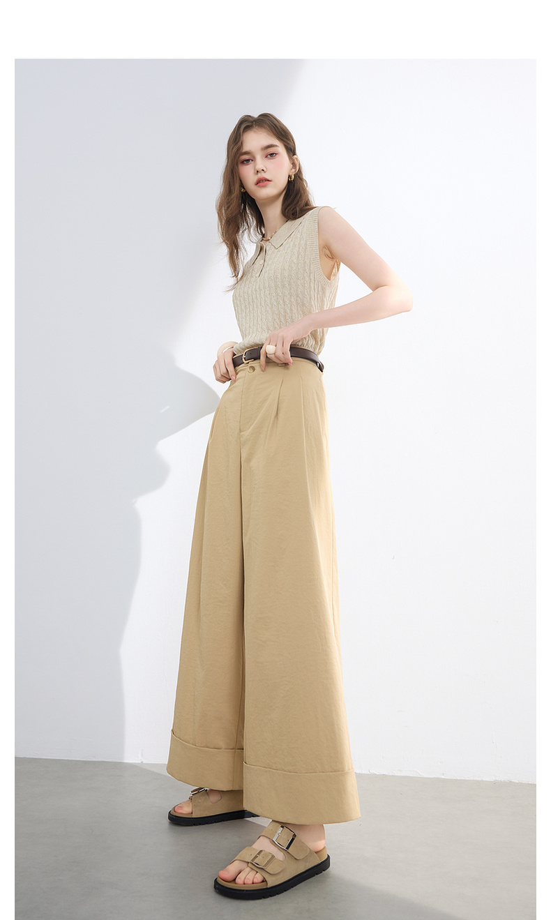 三彩2025夏季新款仿棉休闲裤高腰宽松直筒阔腿裤九分裤卷边M