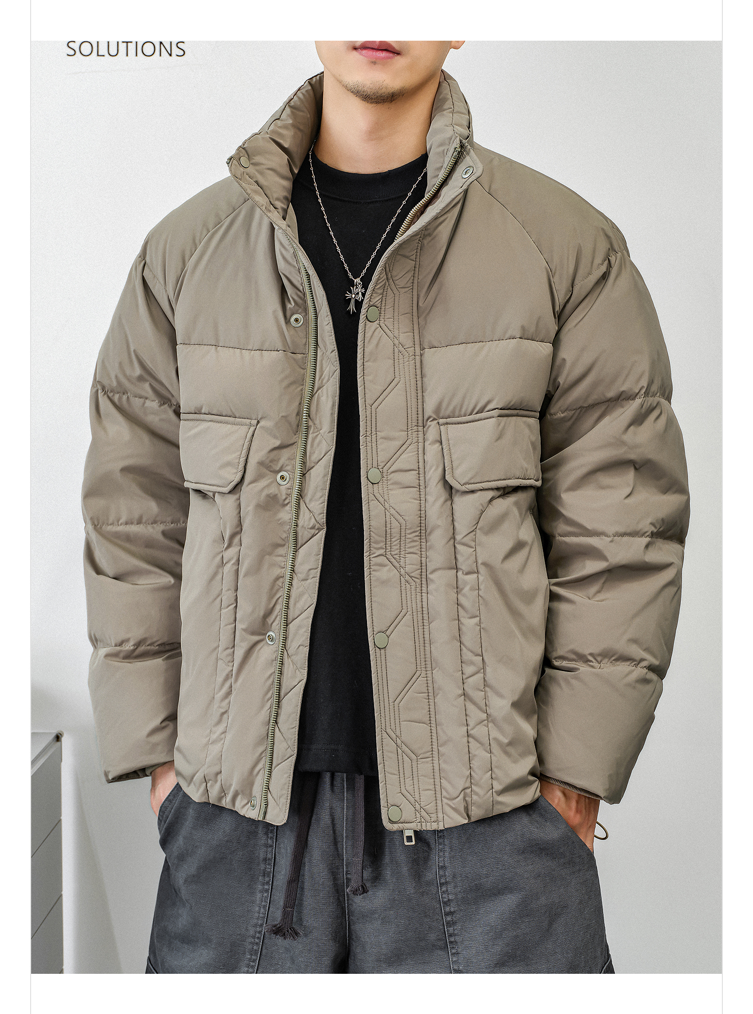 徐太浪【辑行设计 大口袋】厚款羽绒服男冬季大码保暖防寒服外套