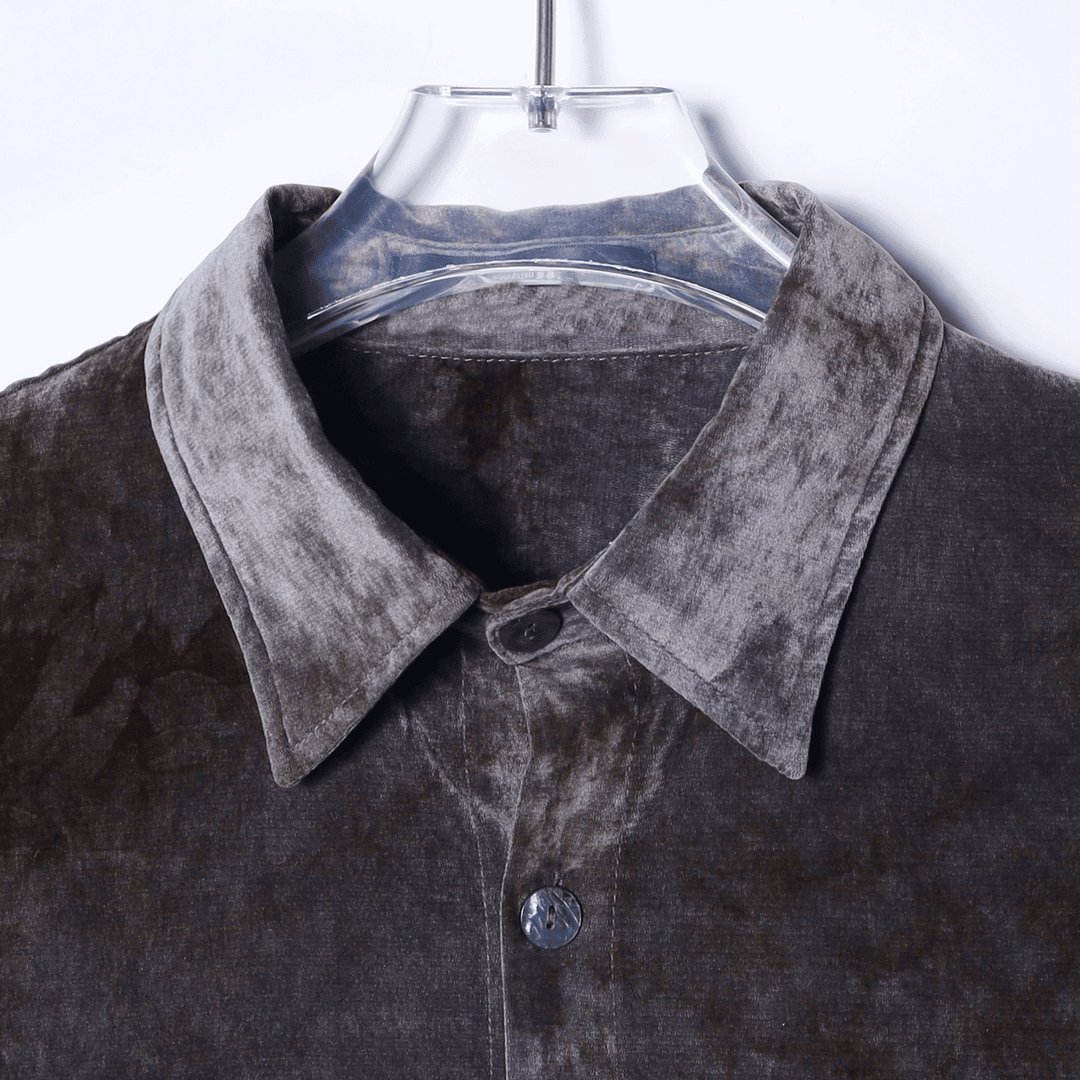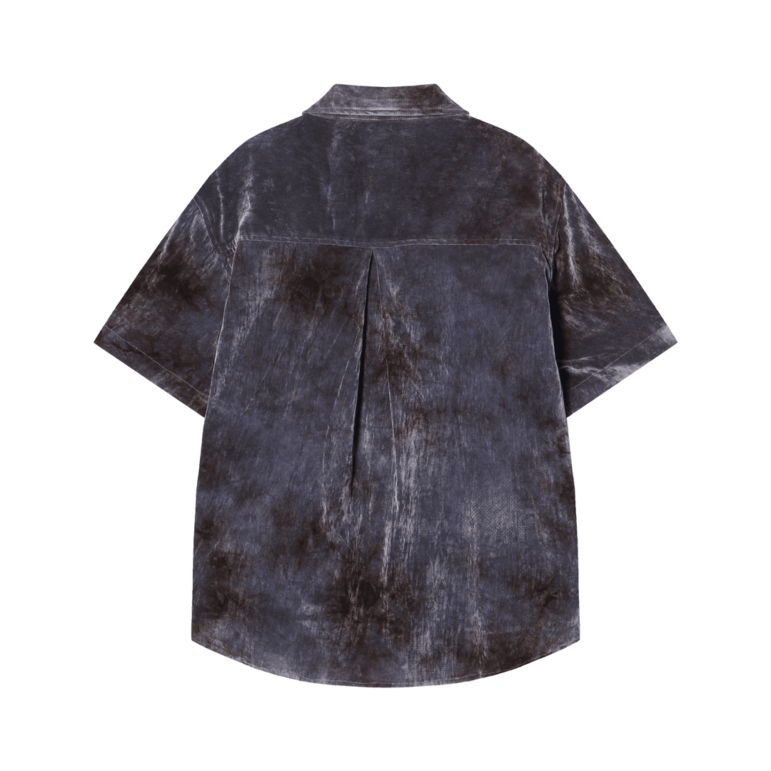 CS119夏季新款绒面复古铁锈印花男士衬衫百搭潮休闲上衣宽松小众