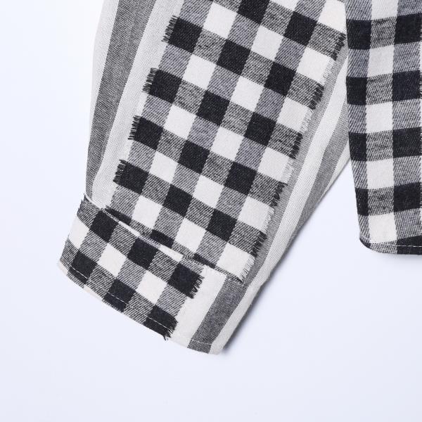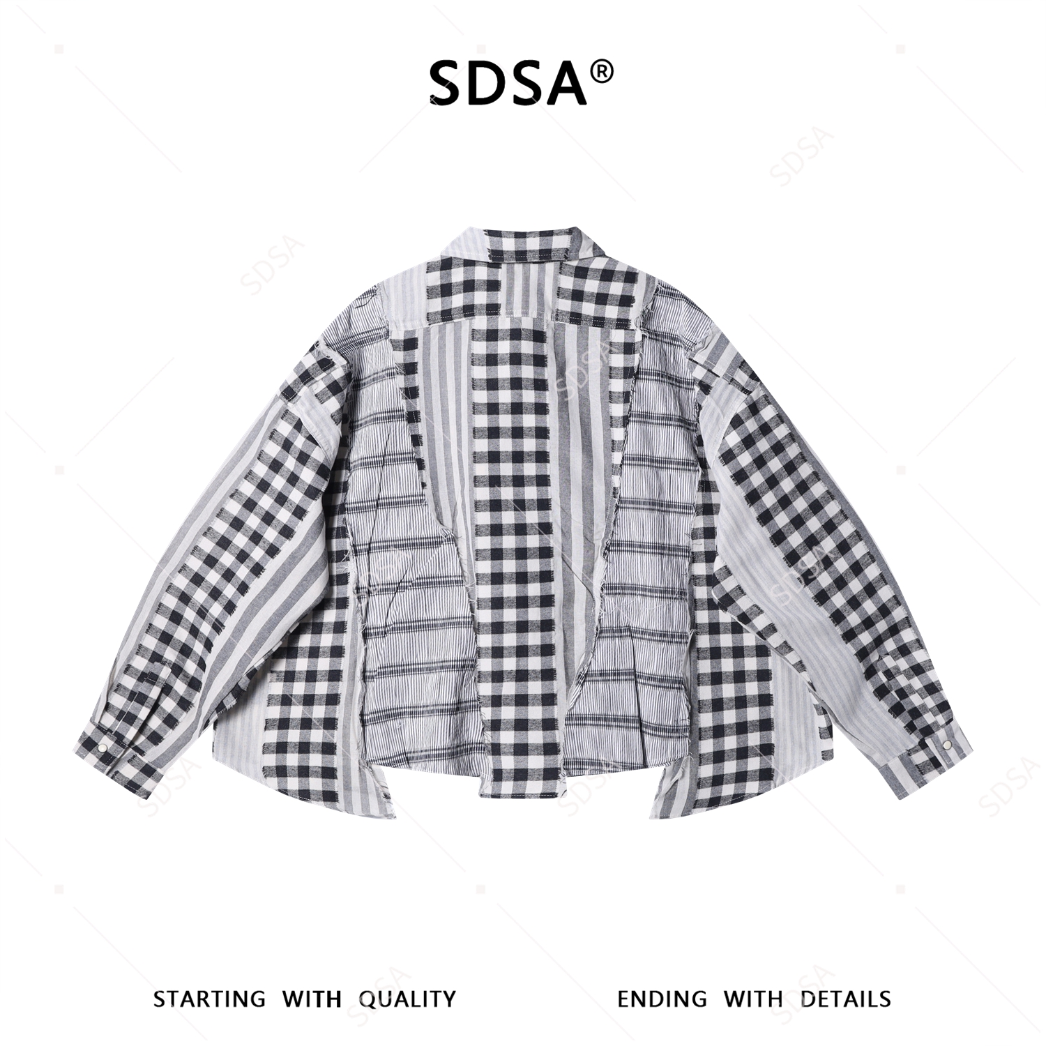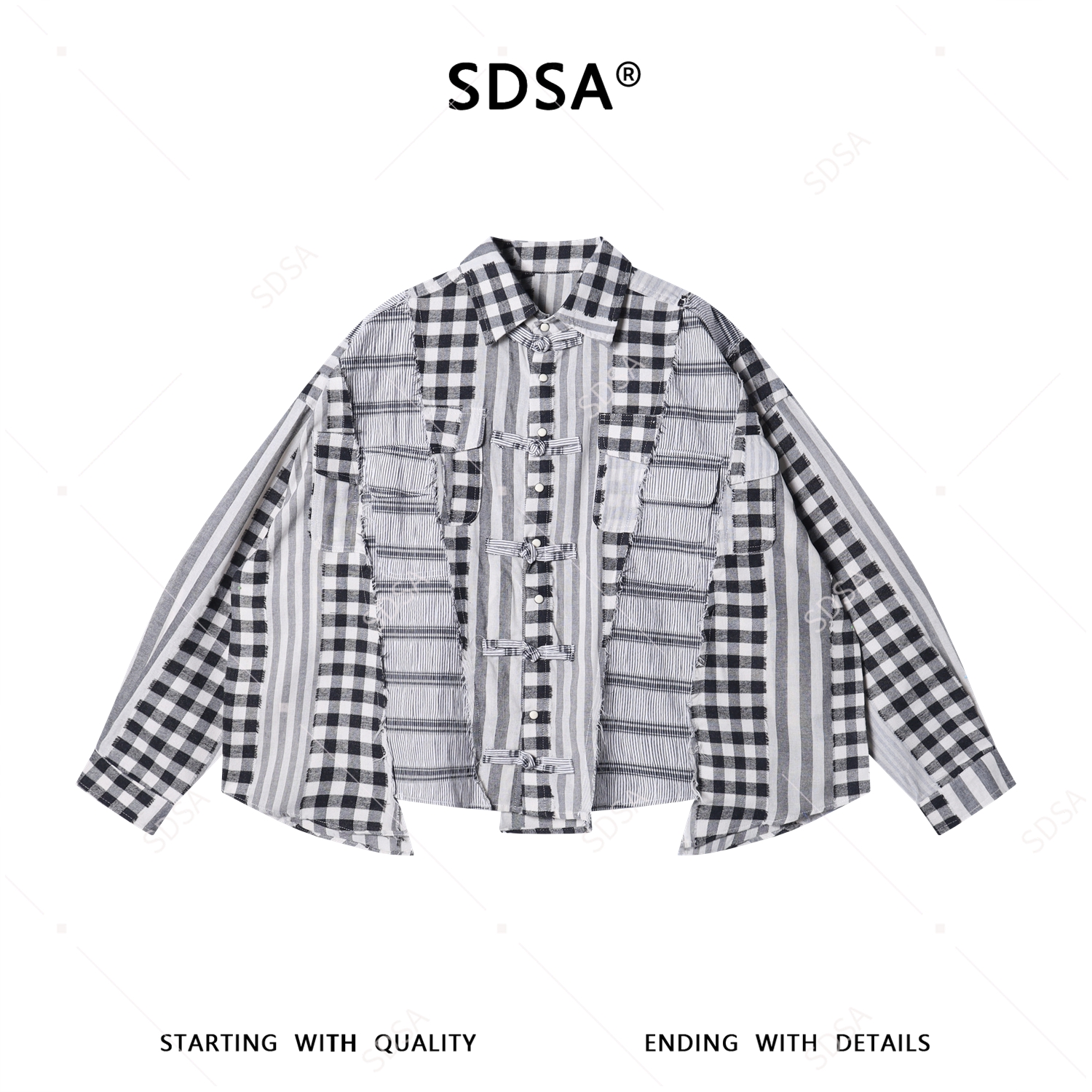 SC3110SDSA男装2026新款轻奢美式宽松拼接撞色格子衬衫一字扣设计百搭