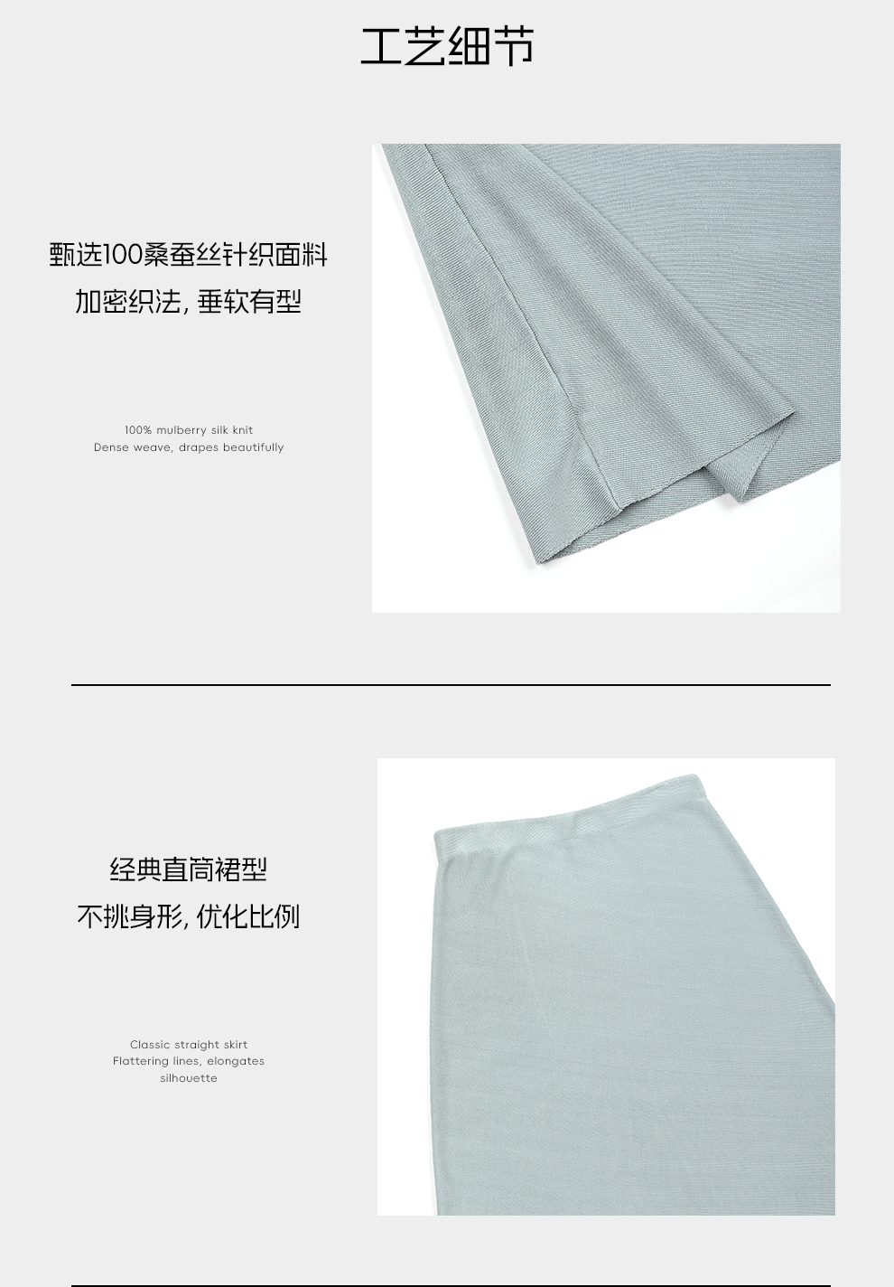 ROMI STUDIO“简约优雅”100%桑蚕丝细密斜纹直筒半身裙RWDSXT1631