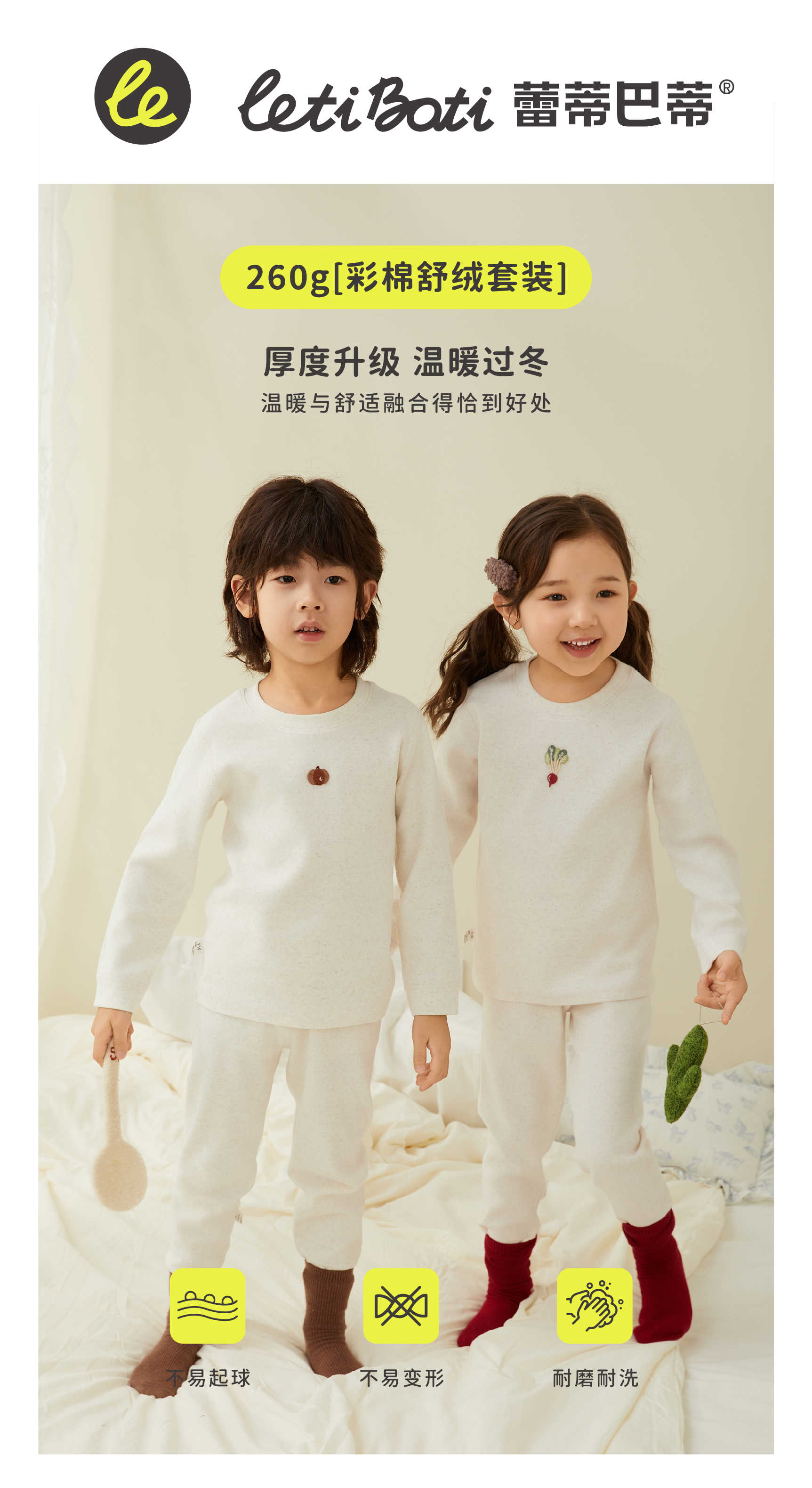 蕾蒂巴蒂 雪花舒绒男女童套装无骨家居服打底内衣套装男女童装