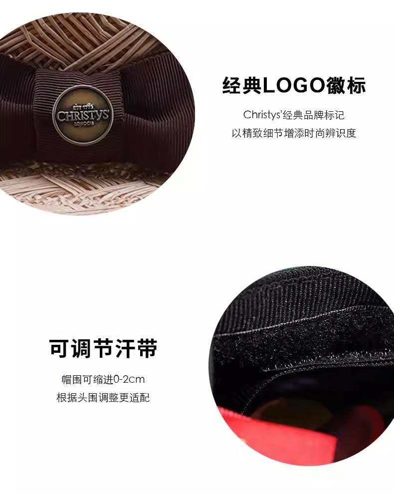 【新品】Christys'百年皇室品牌 手工编花宝草Fedora草帽 礼帽
