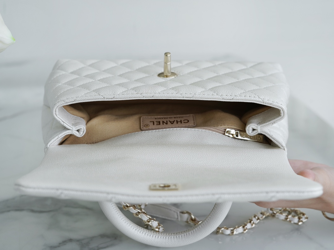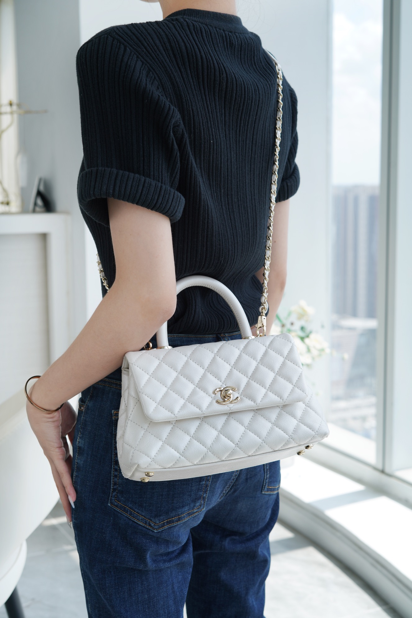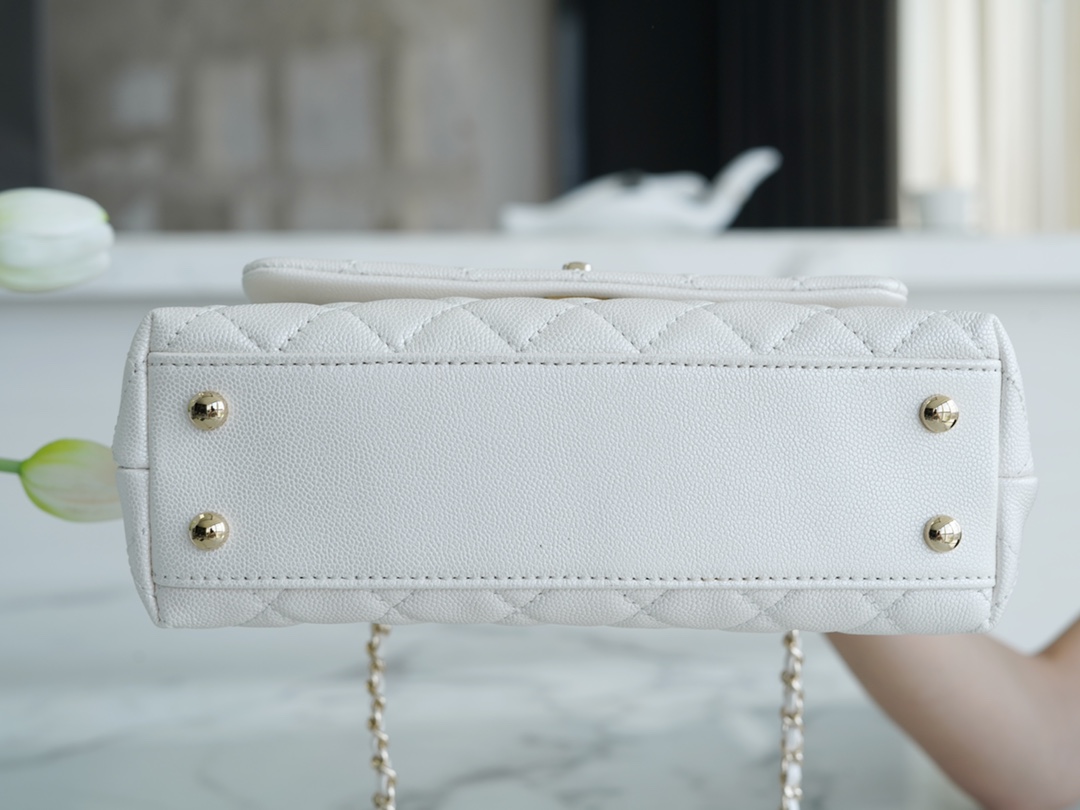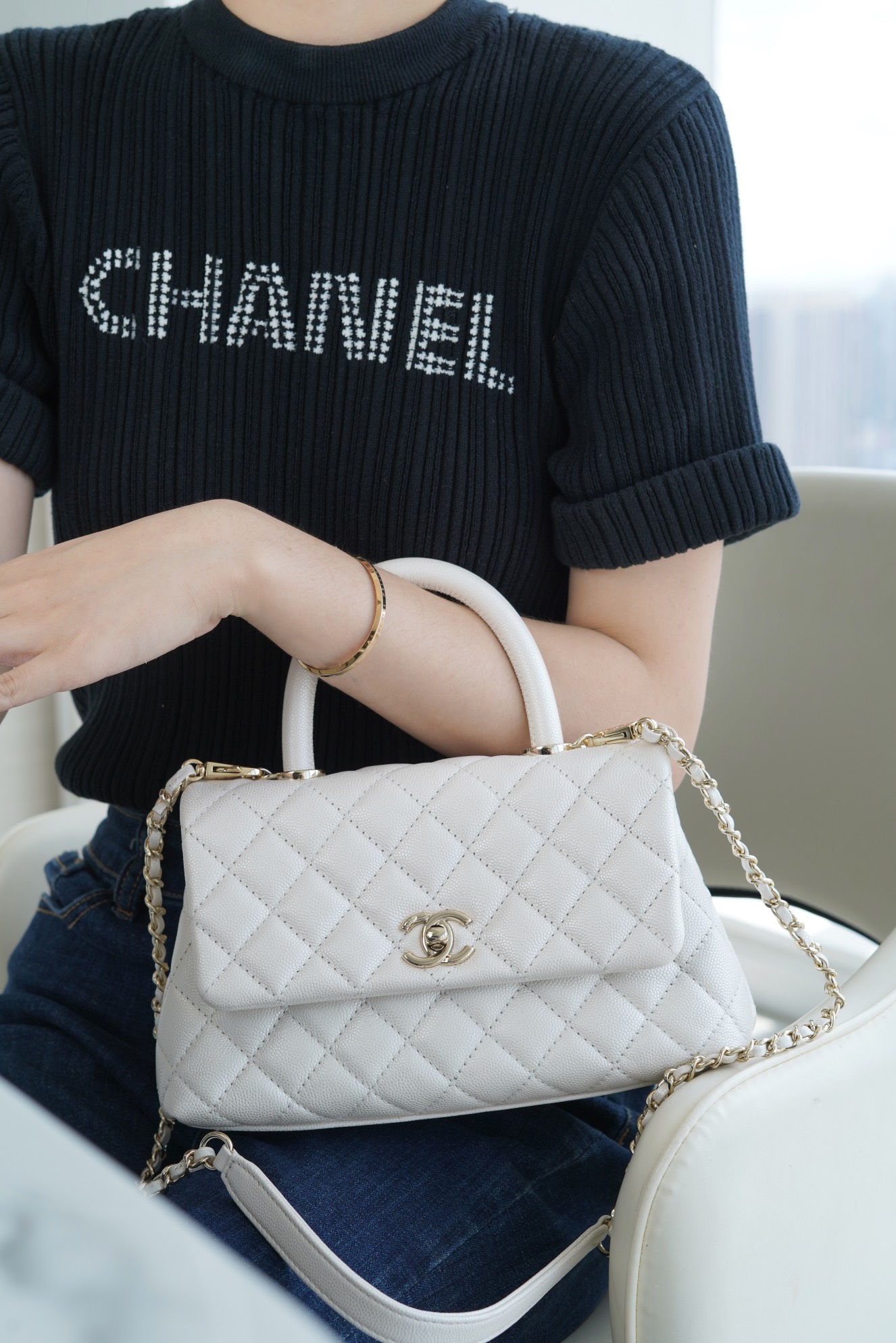 𝗖𝗛𝗔𝗡*𝗟 𝗖𝗼𝗰𝗼 𝗵𝗮𝗻𝗱𝗹𝗲 新款牛皮手柄 小号 珍珠白