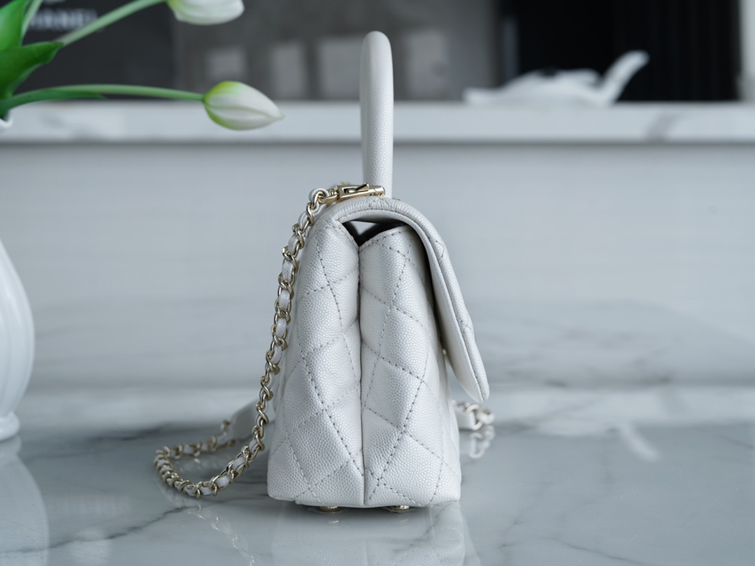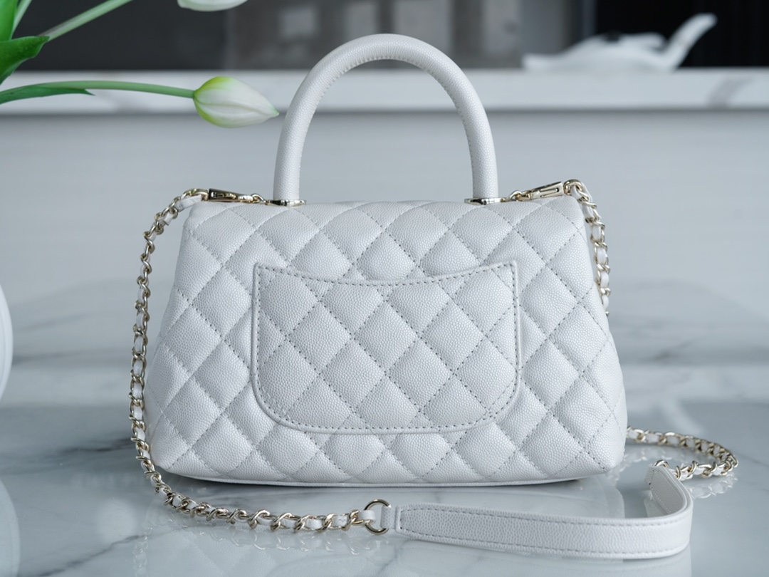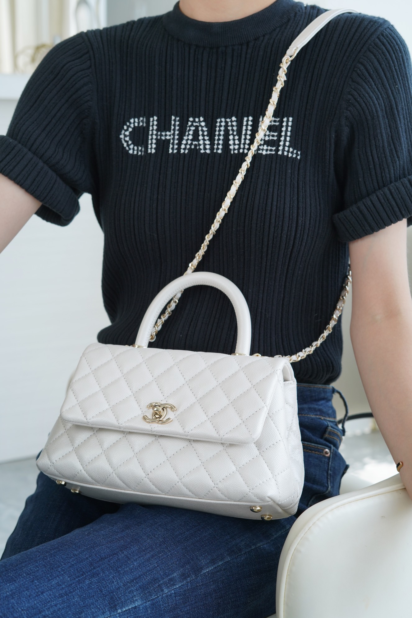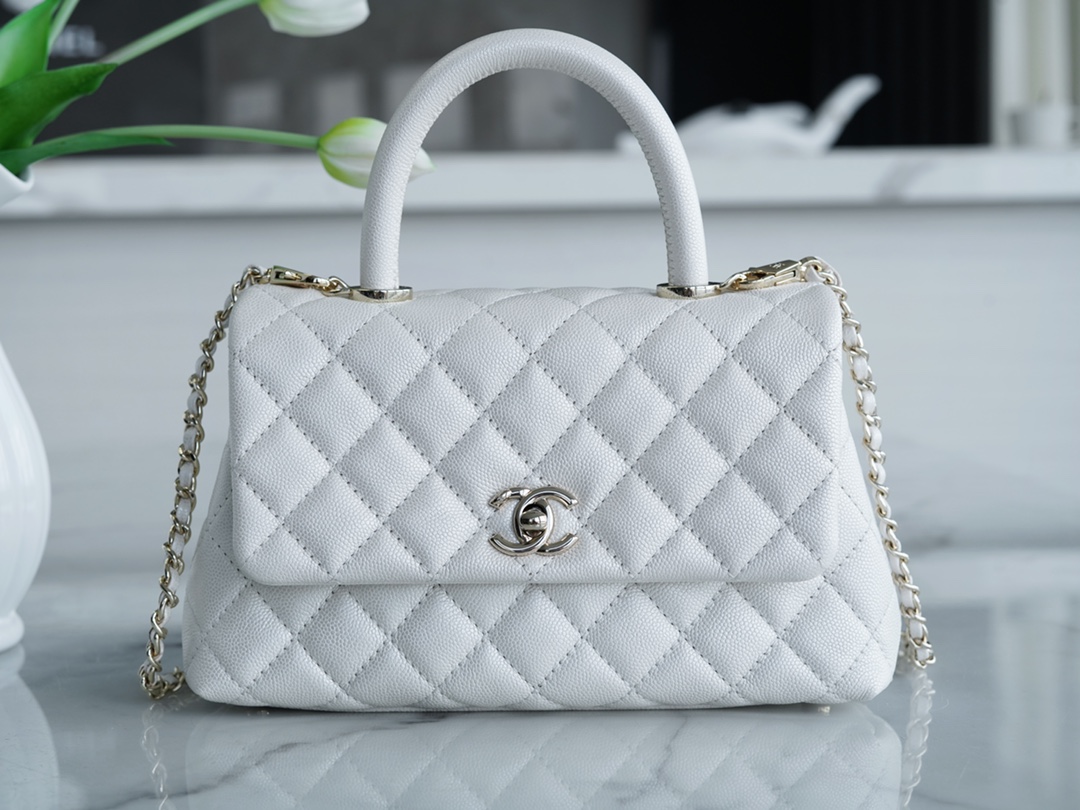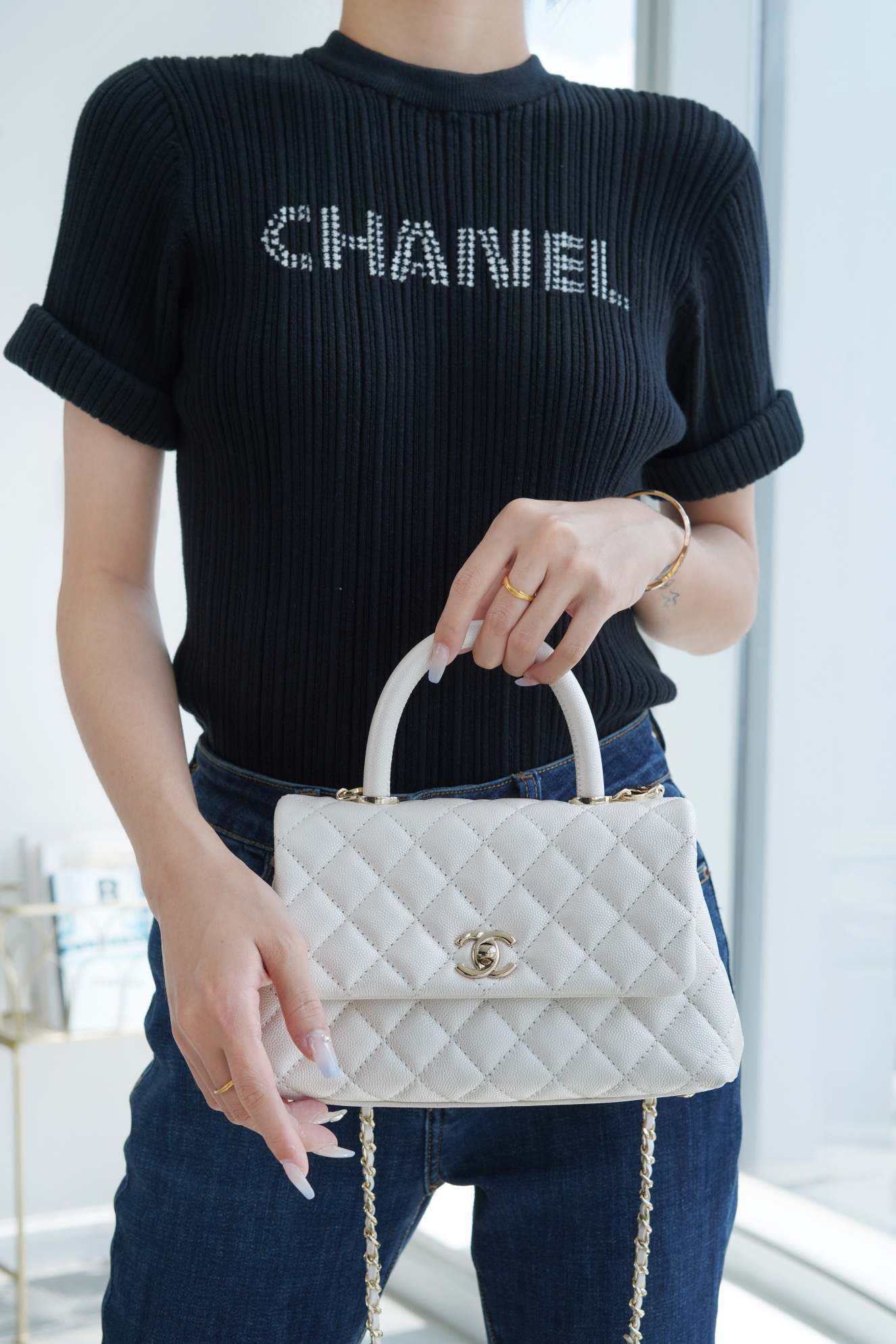 𝗖𝗛𝗔𝗡*𝗟 𝗖𝗼𝗰𝗼 𝗵𝗮𝗻𝗱𝗹𝗲 新款牛皮手柄 小号 珍珠白