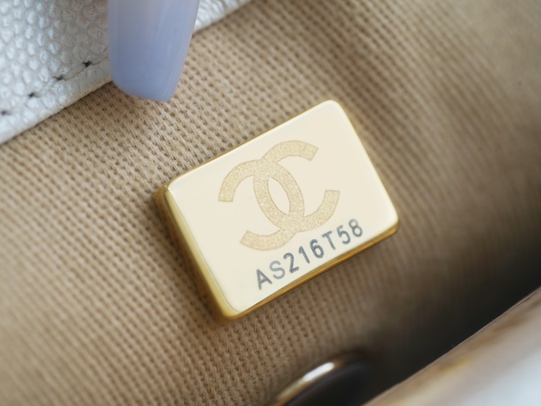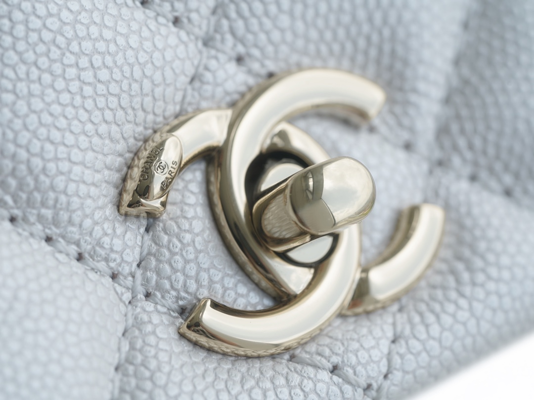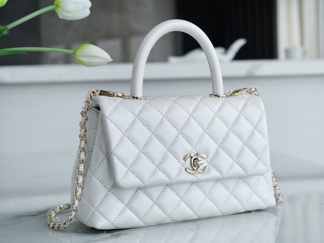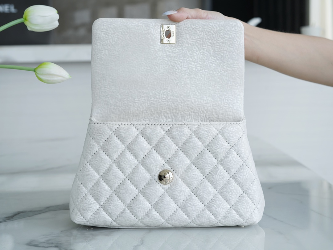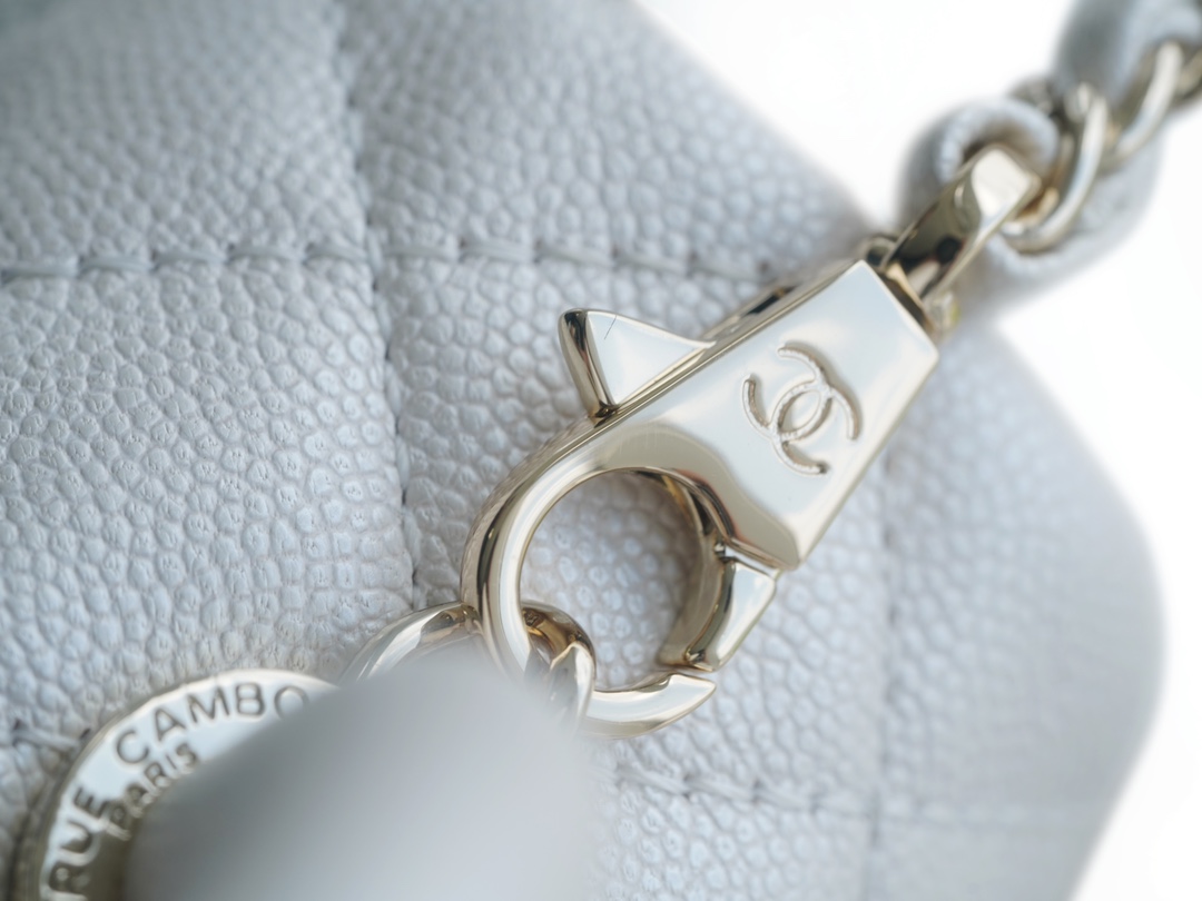 𝗖𝗛𝗔𝗡*𝗟 𝗖𝗼𝗰𝗼 𝗵𝗮𝗻𝗱𝗹𝗲 新款牛皮手柄 小号 珍珠白