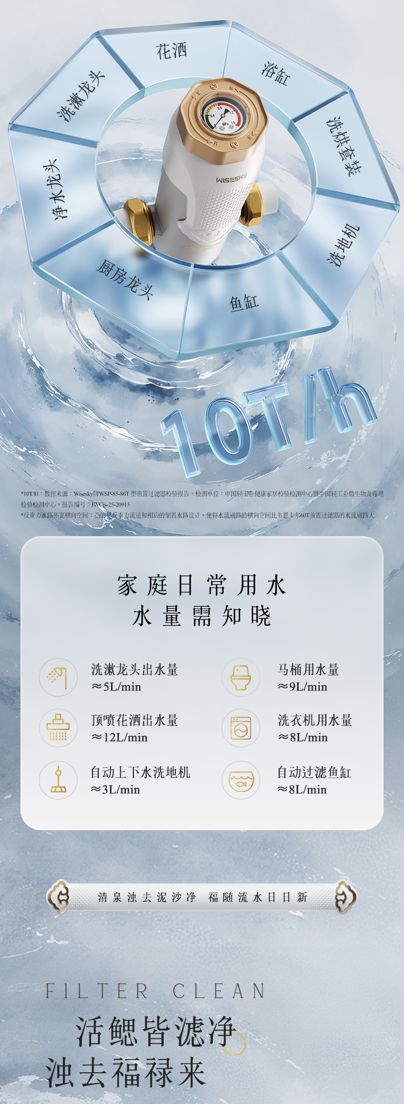韦思卡尔WSP-80TPro全自动反重力前置过滤器家用自动反冲洗净水器