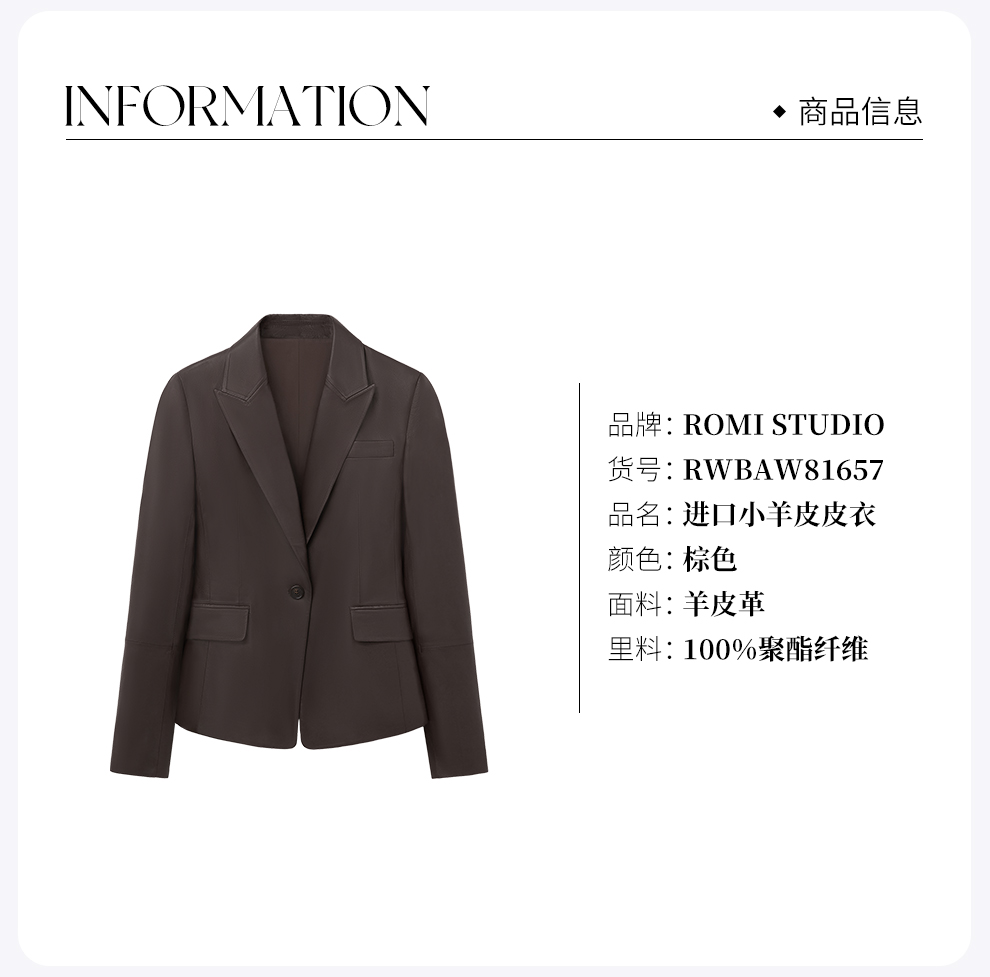 ROMI STUDIO“自我轮廓”100%进口羊皮软糯修身皮衣外套 RWBAW81657【不翻单】