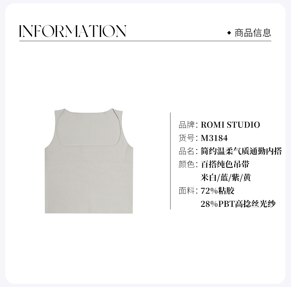 ROMI STUDIO-B 复古小众 气质显瘦修身纯色吊带M3184/T3184