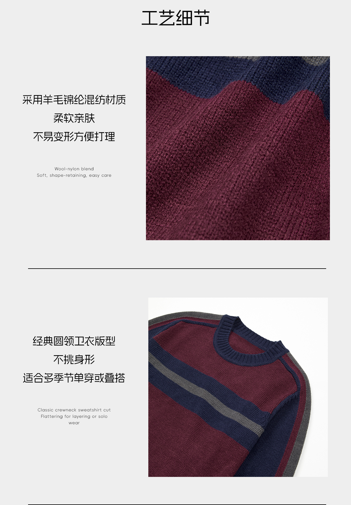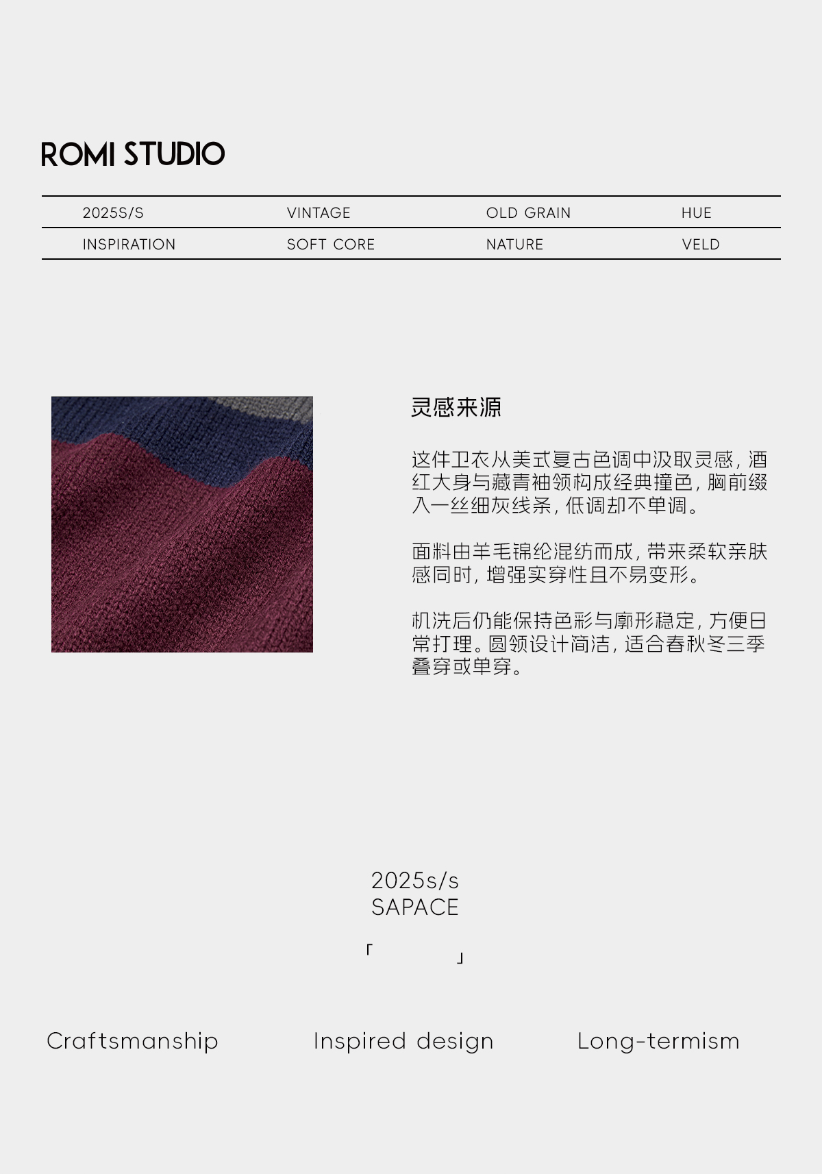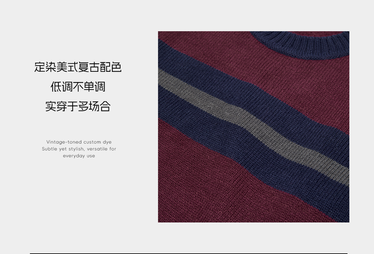 ROMISTUDIO“经典美式”羊毛混纺复古撞色挺括圆领毛衣 RWCAS66955