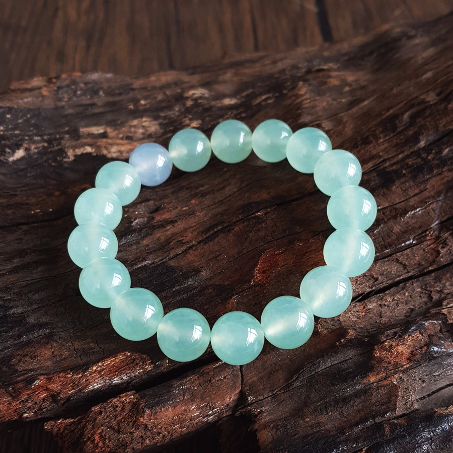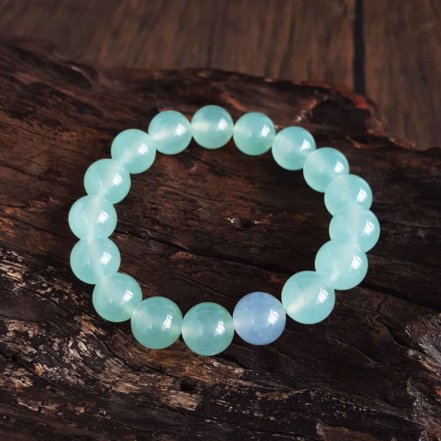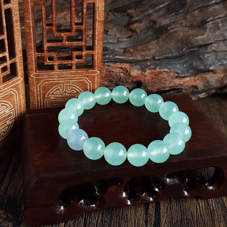 名称 | 天然收藏级细腻无纹裂冰种春带彩晴水约10.8MM翡翠圆珠手串 |