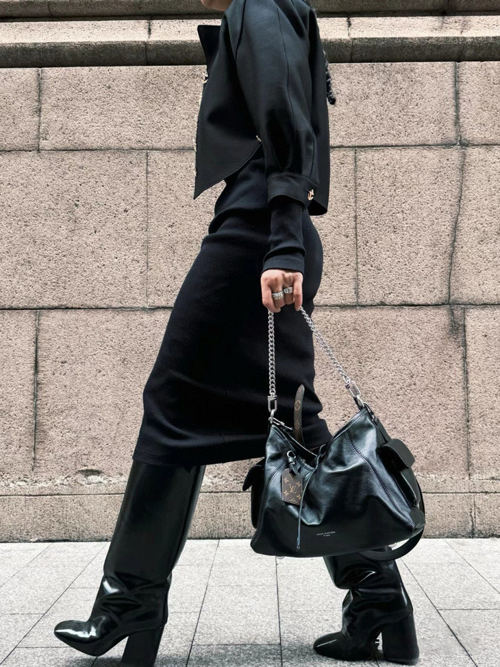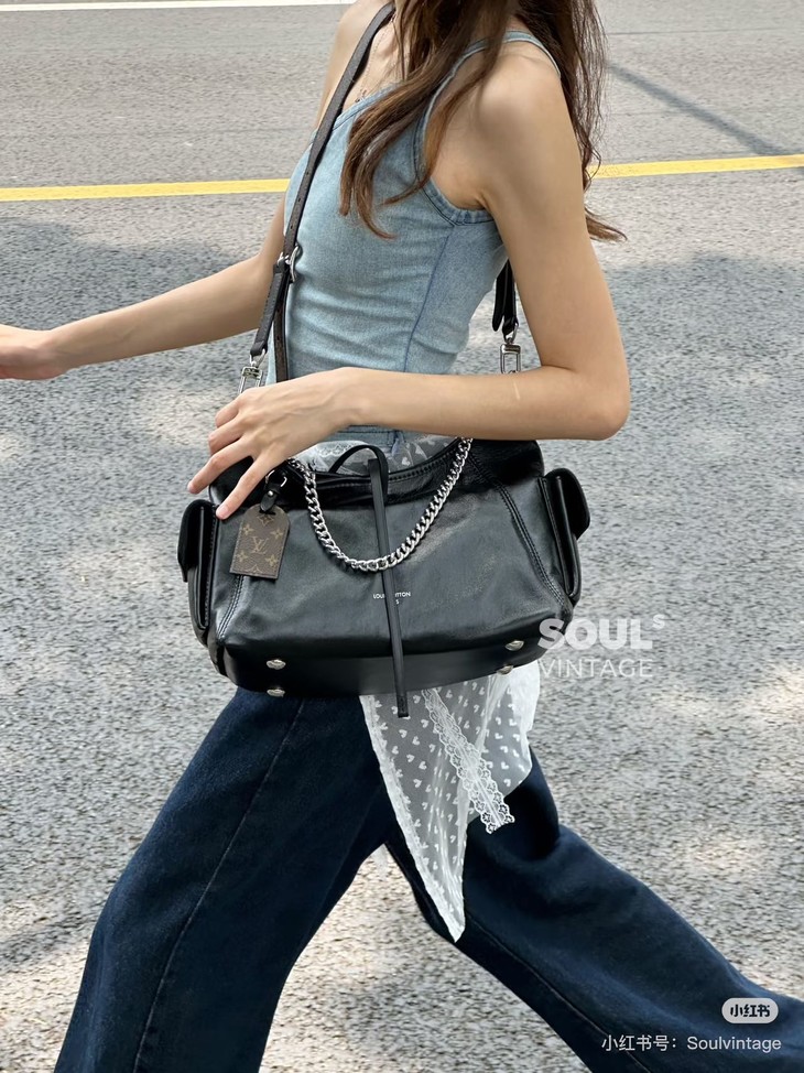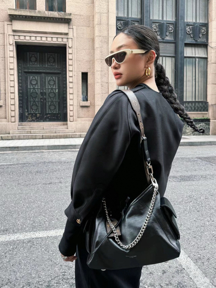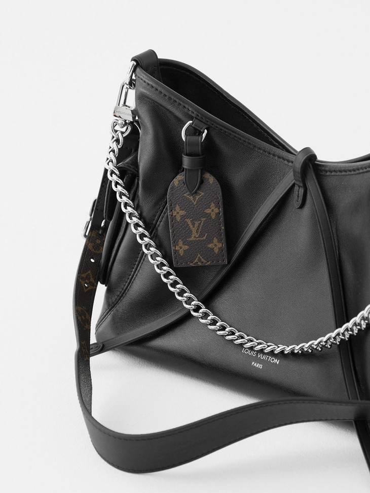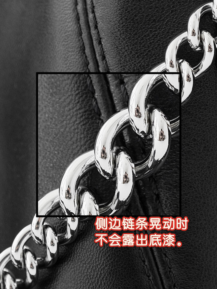 光滑柔软小羊皮和硬朗钢制肩链的碰撞