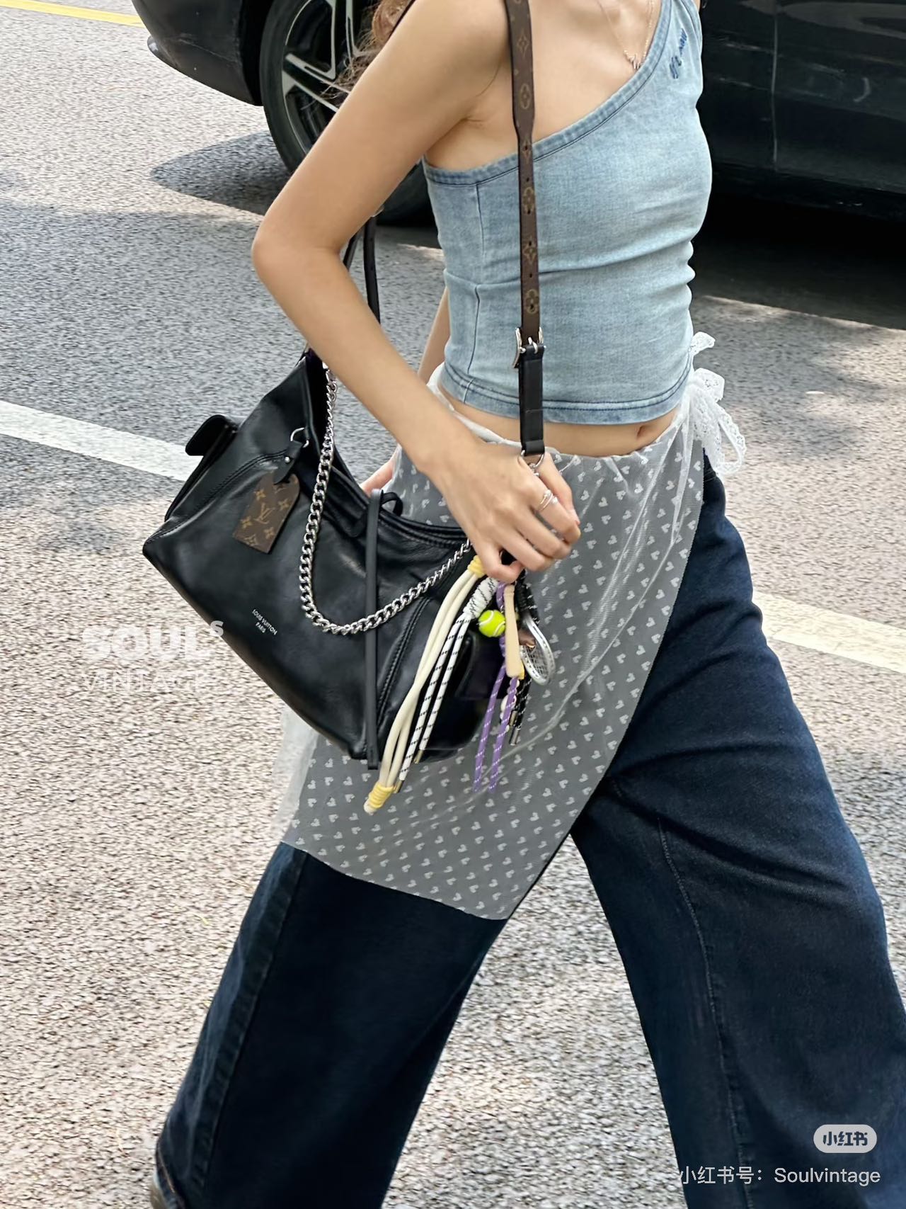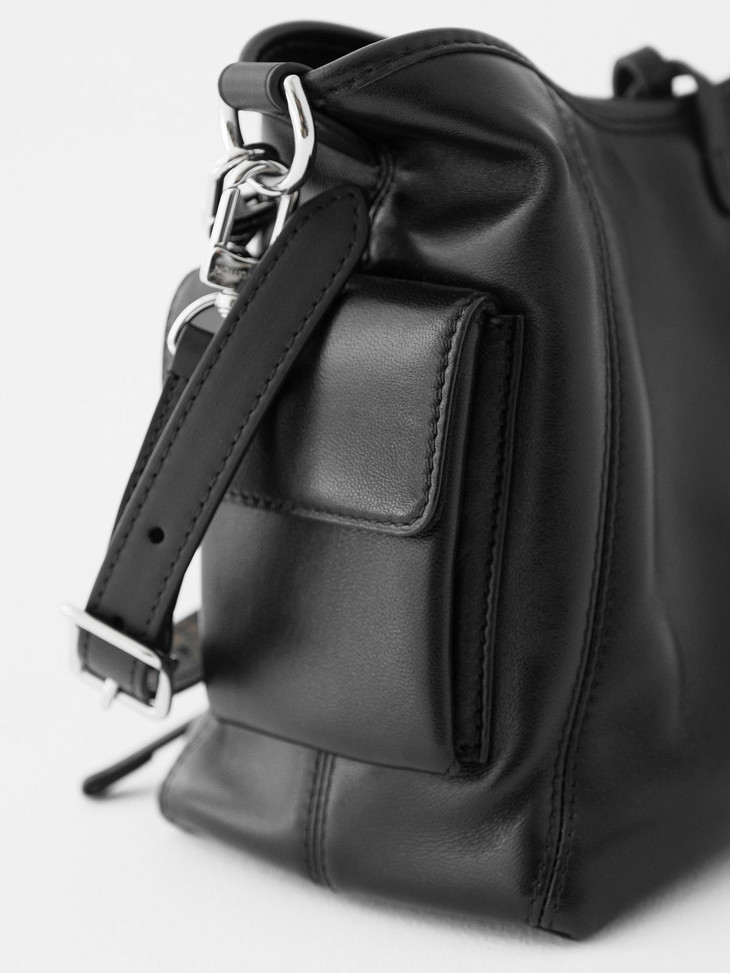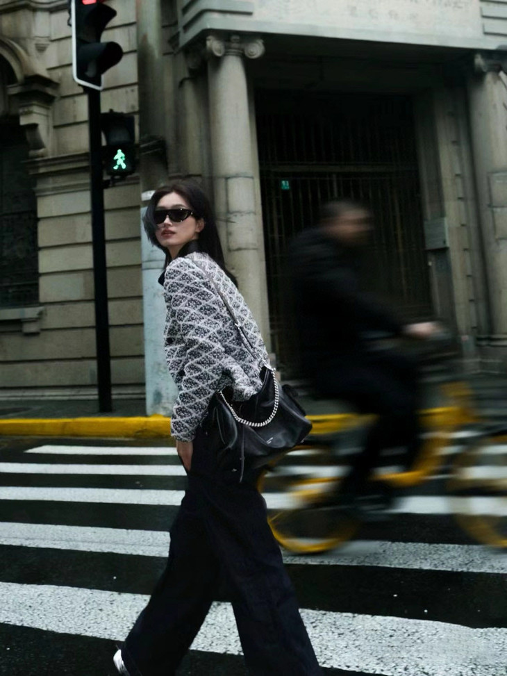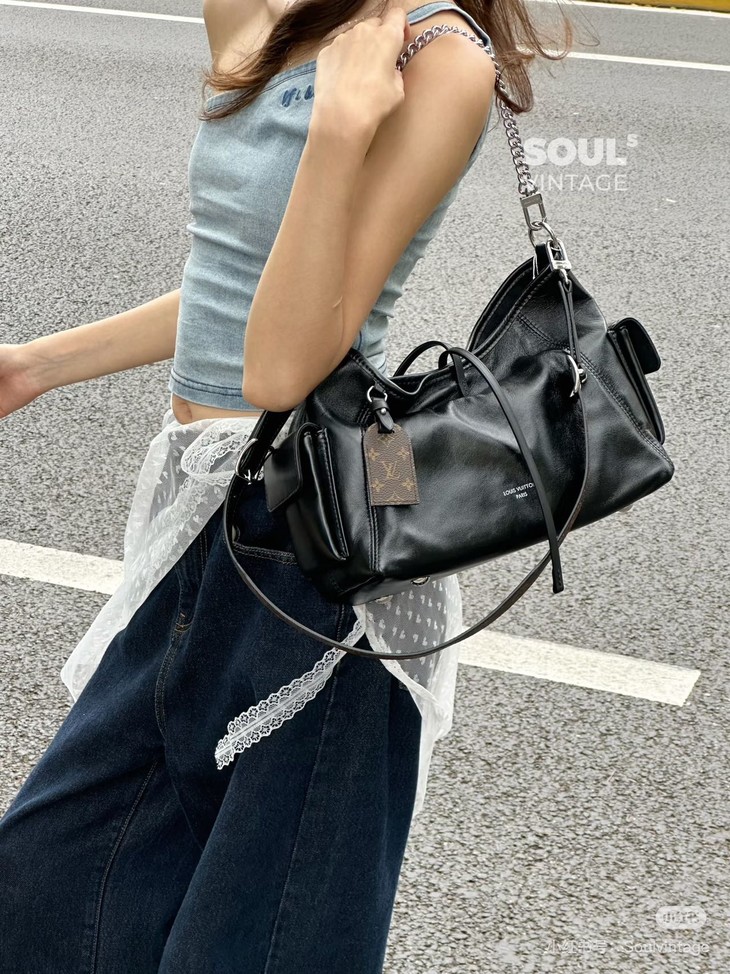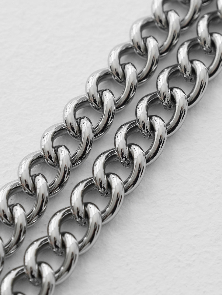 光滑柔软小羊皮和硬朗钢制肩链的碰撞