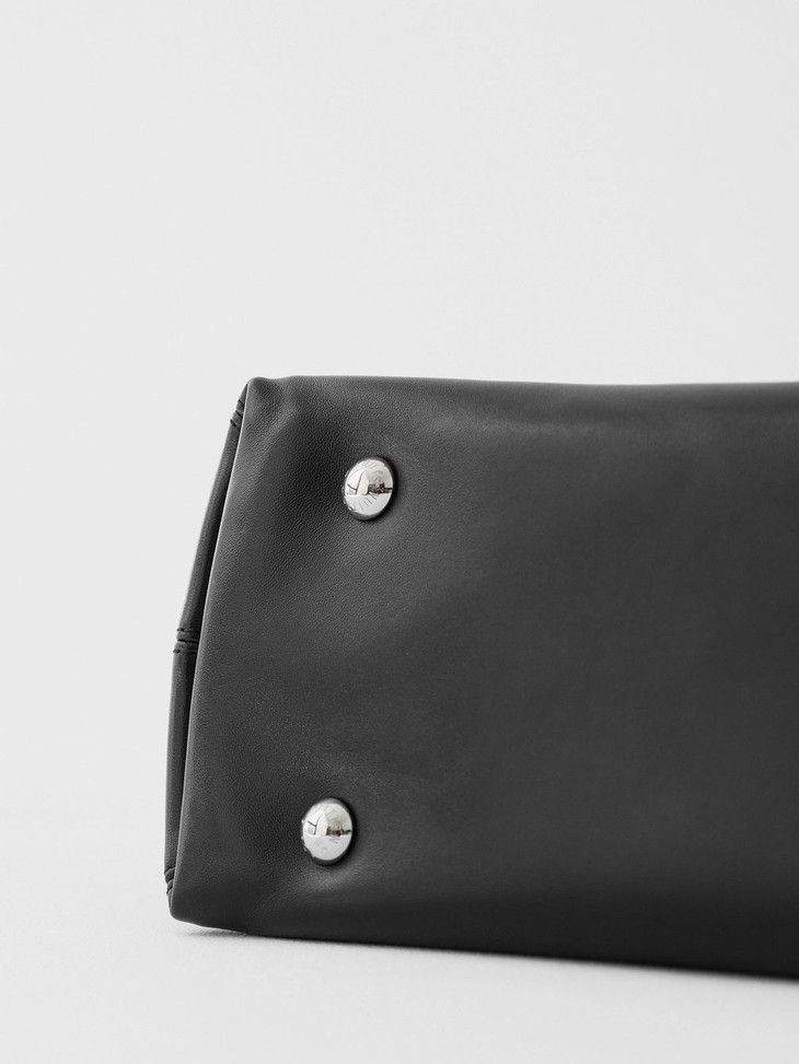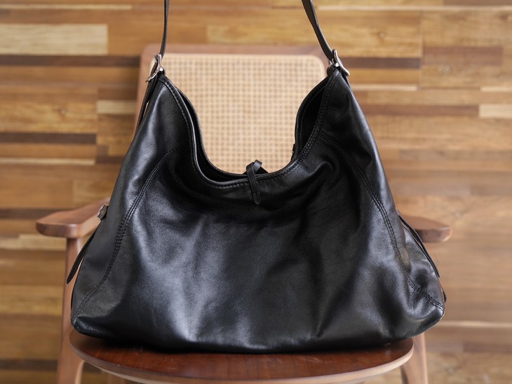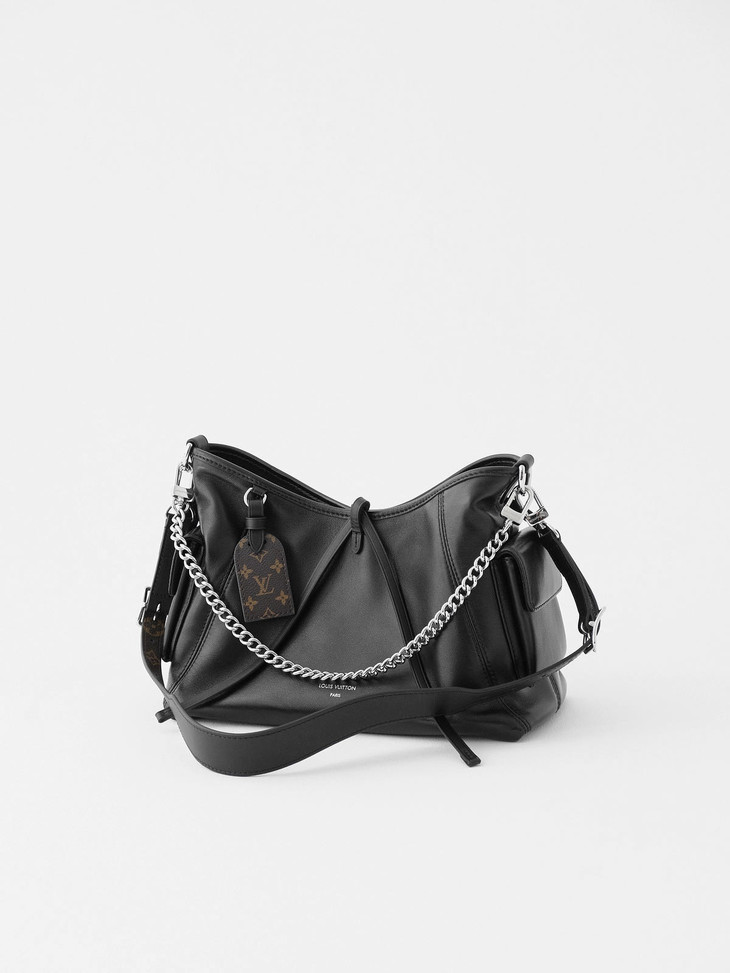 本款CarryAllCargo小号手袋以柔软羊皮革呈现时尚微皱效果,并为深邃背景搭配抛光金属件与慵懒构型,成就昼夜场合佳选。可拆卸肩带与链带实现多种造型可能。