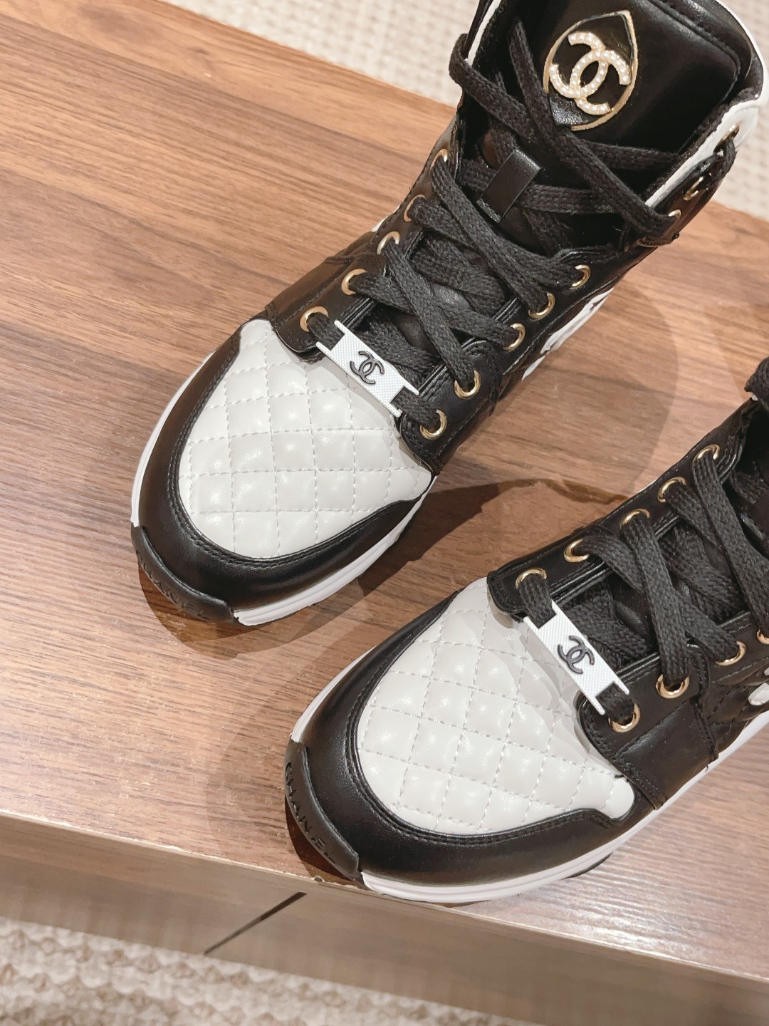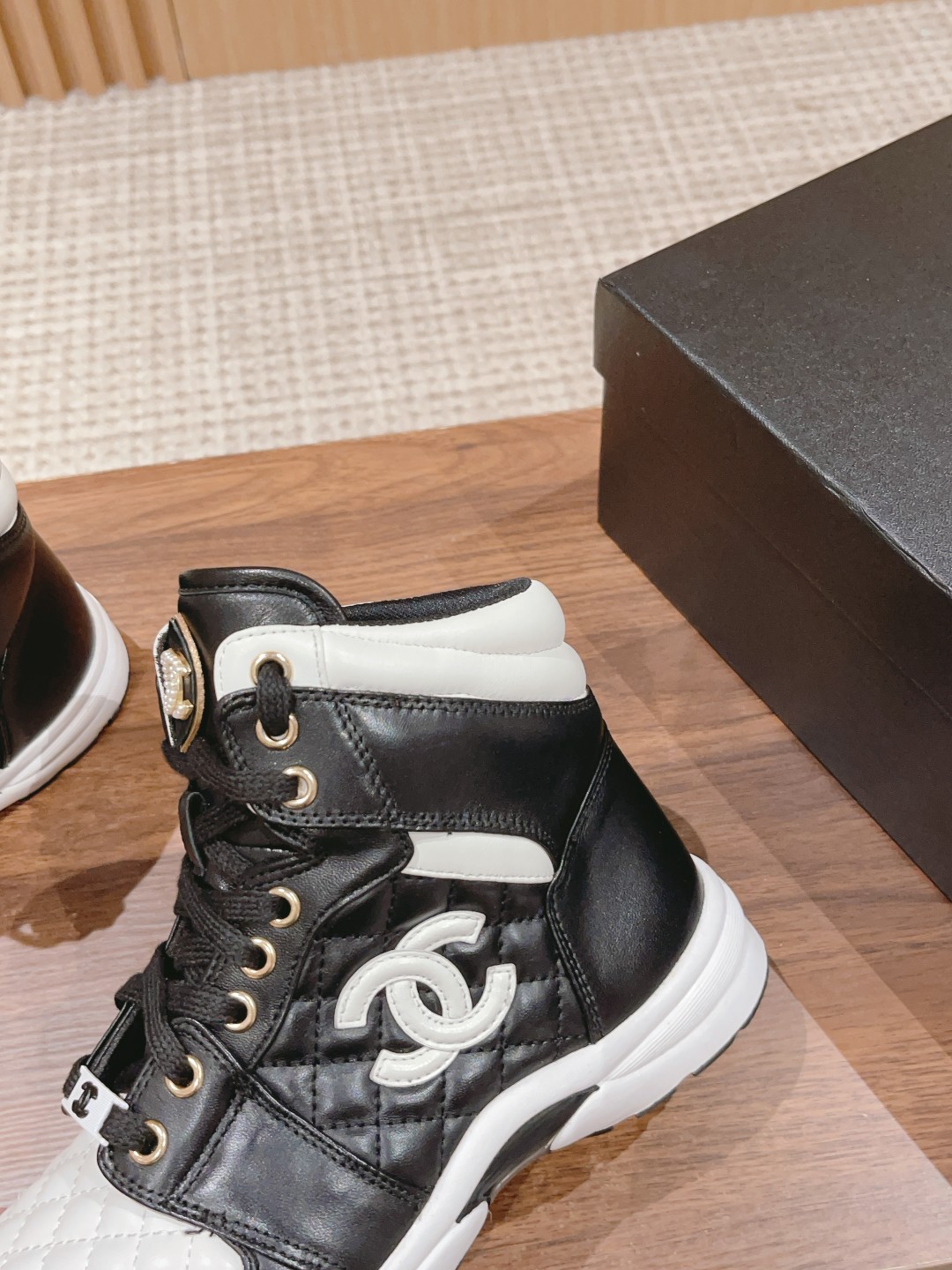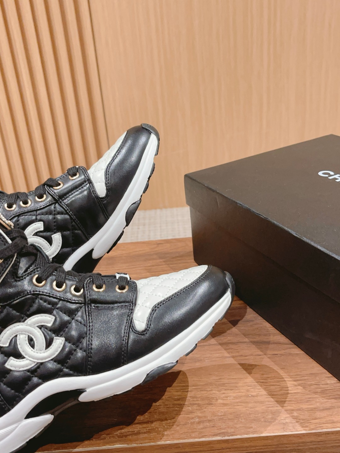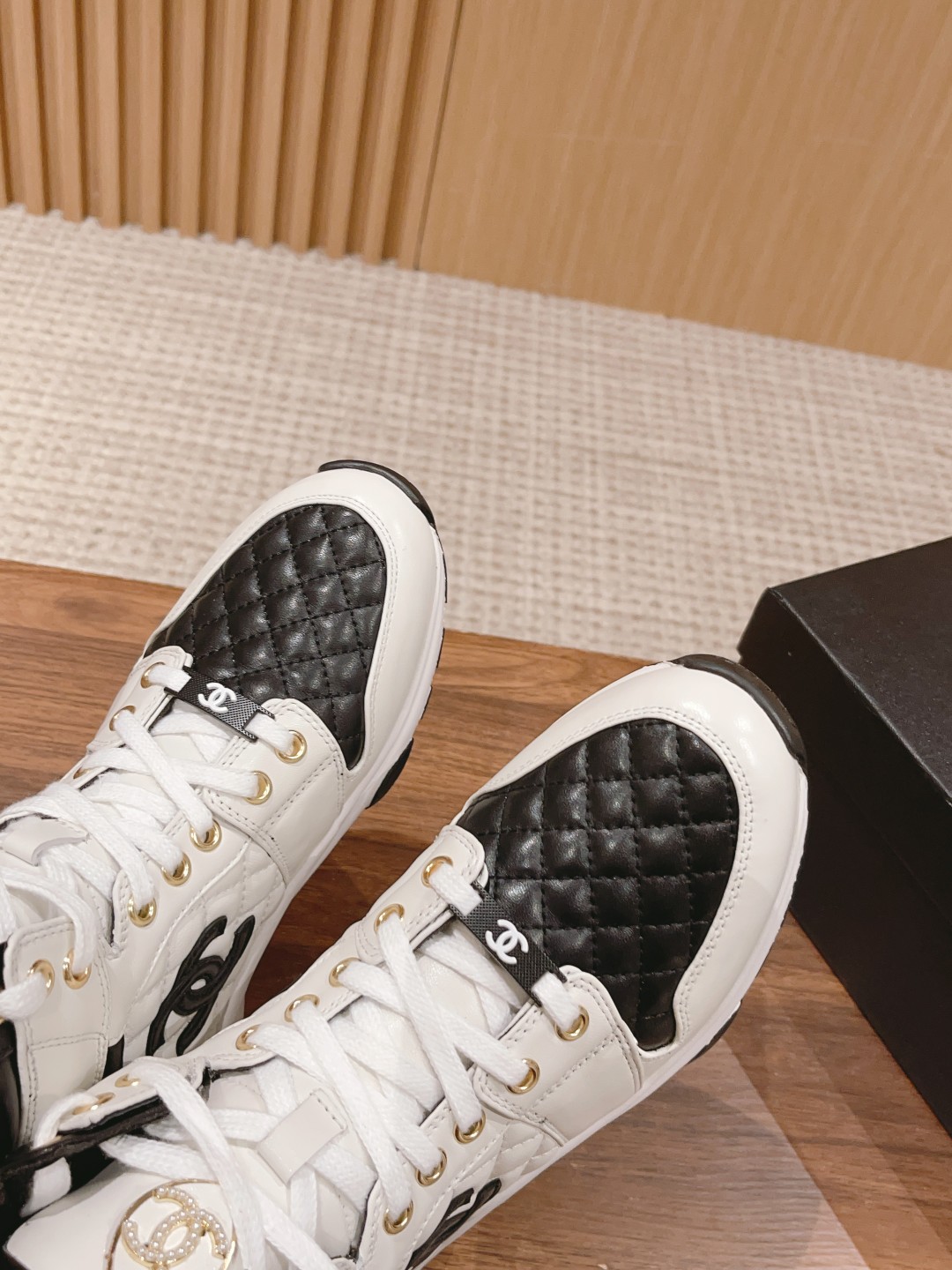 【运动底】 CHANEL 香奈儿23A最新款 全皮 熊猫配色 菱格小白鞋 休闲 运动鞋 滑板鞋 高帮鞋