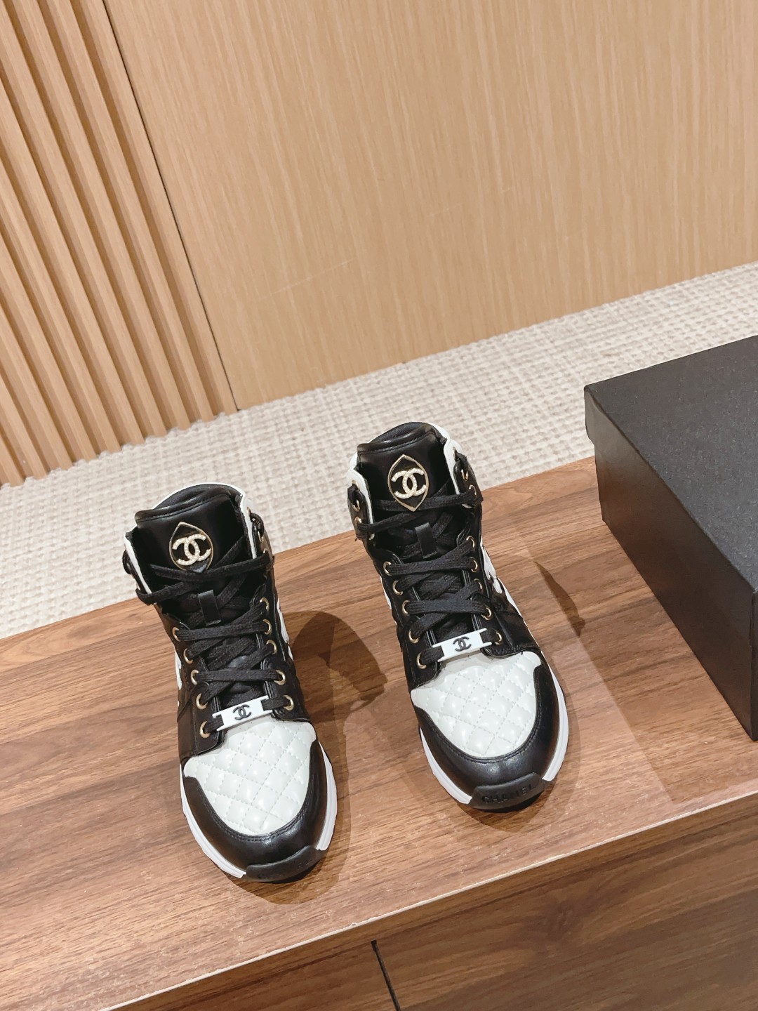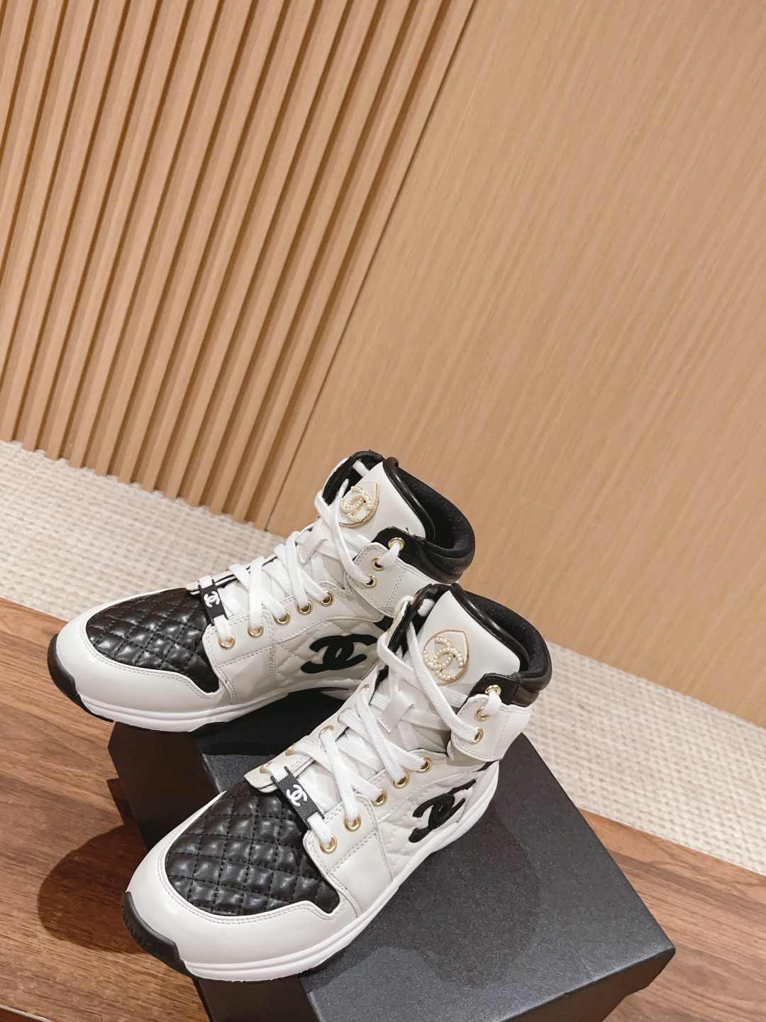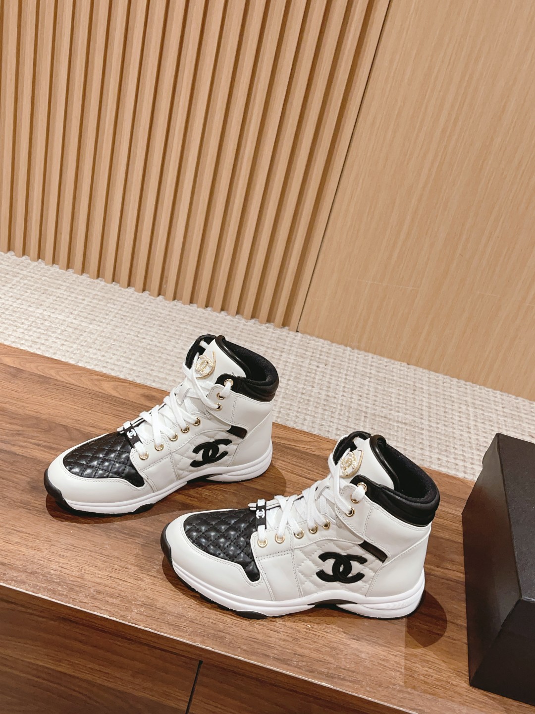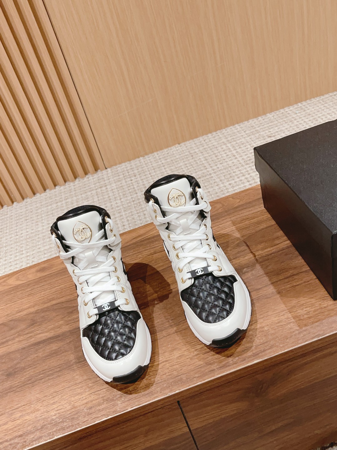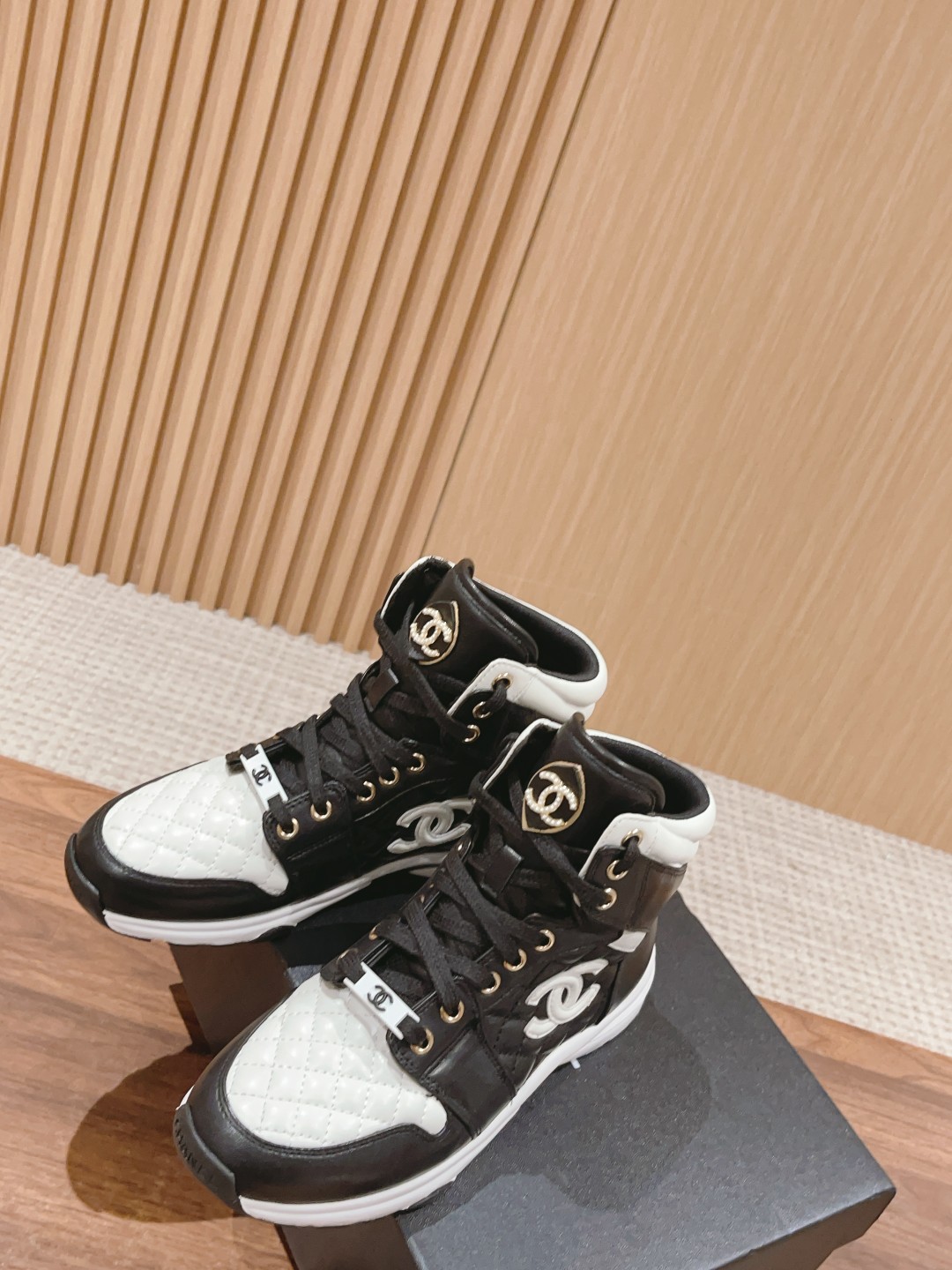 【运动底】 CHANEL 香奈儿23A最新款 全皮 熊猫配色 菱格小白鞋 休闲 运动鞋 滑板鞋 高帮鞋
