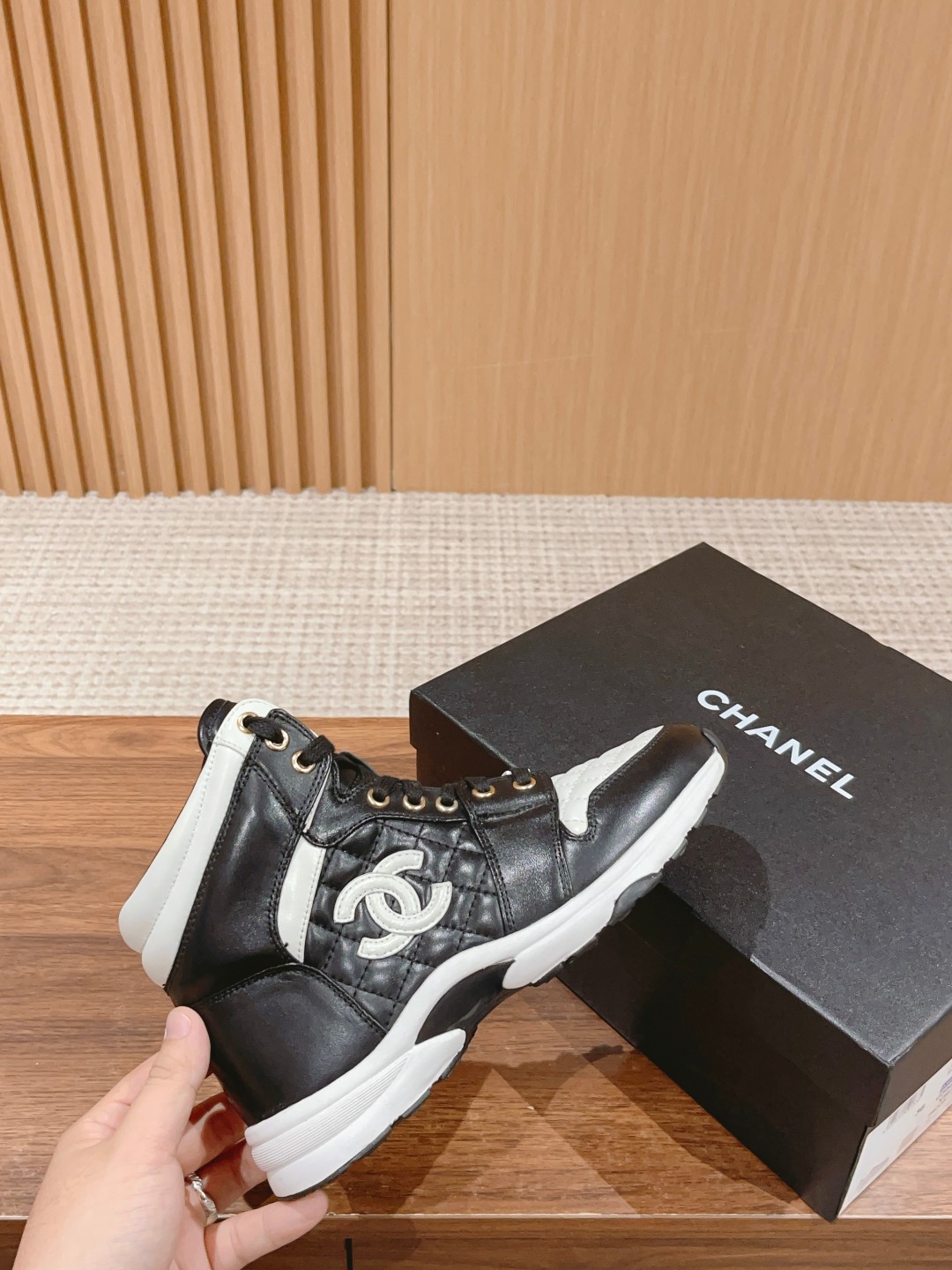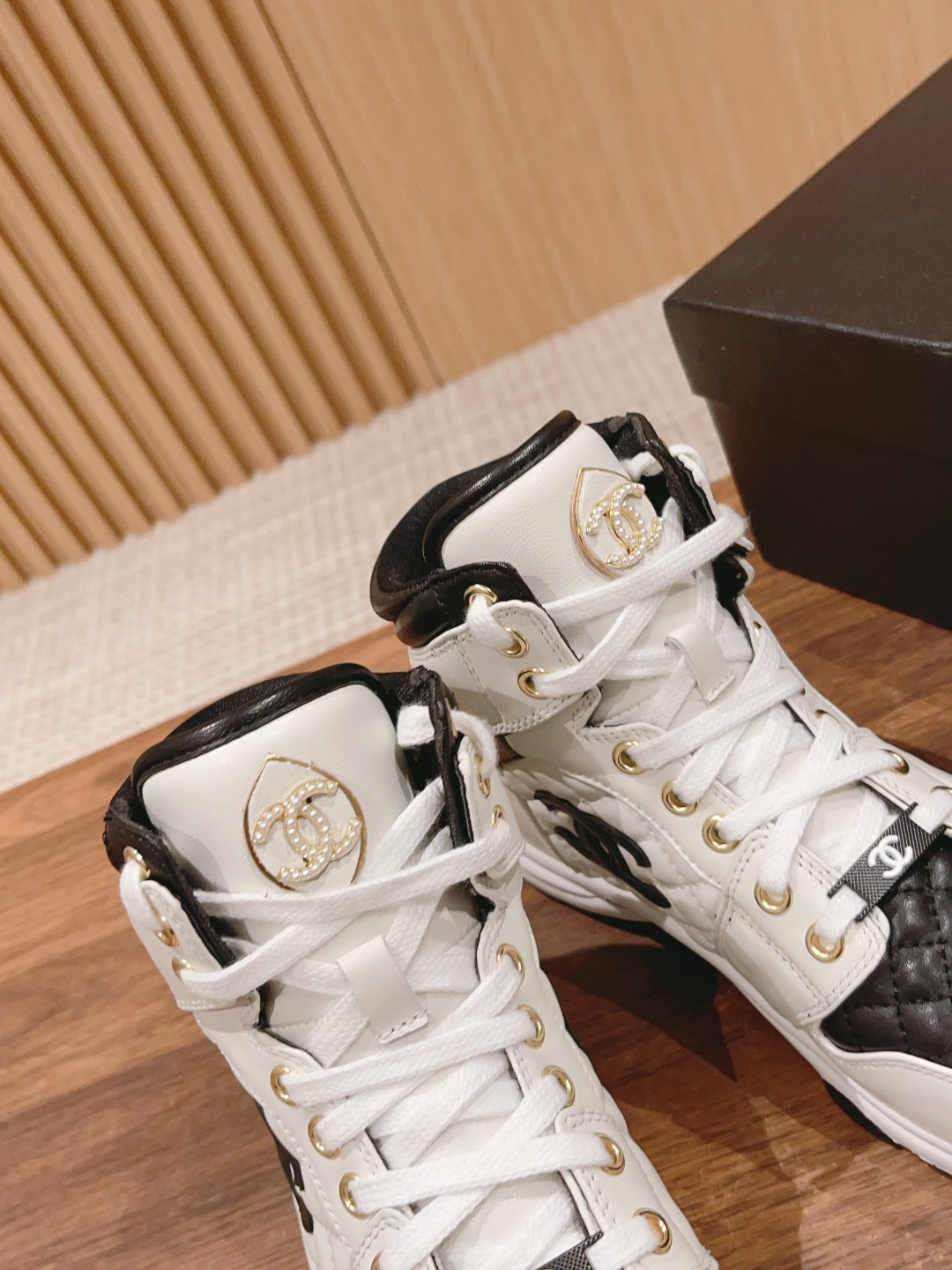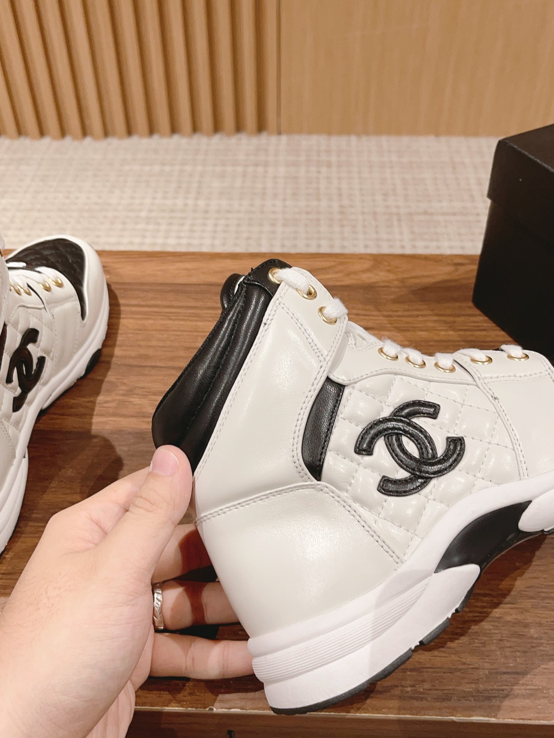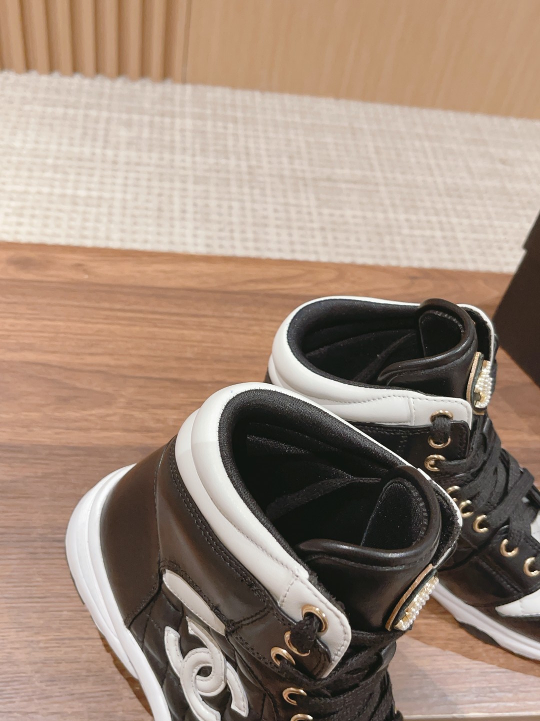 【运动底】 CHANEL 香奈儿23A最新款 全皮 熊猫配色 菱格小白鞋 休闲 运动鞋 滑板鞋 高帮鞋