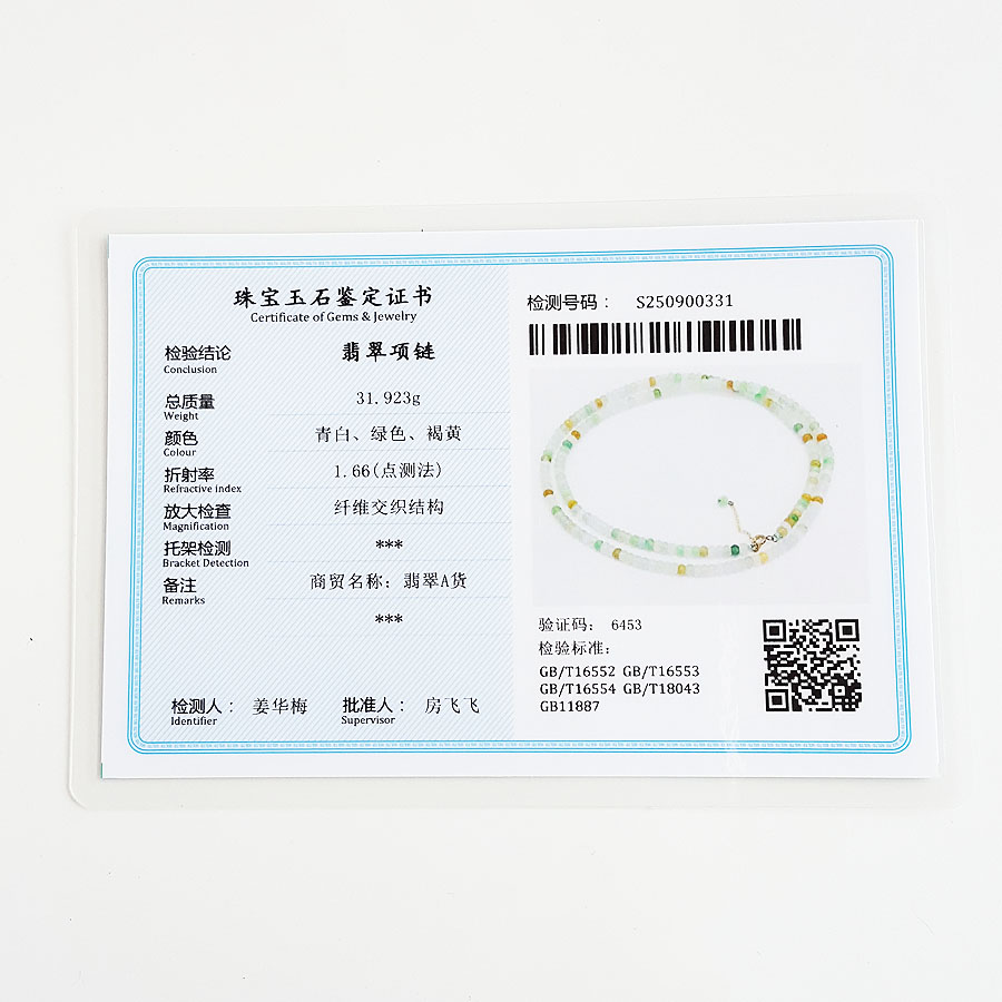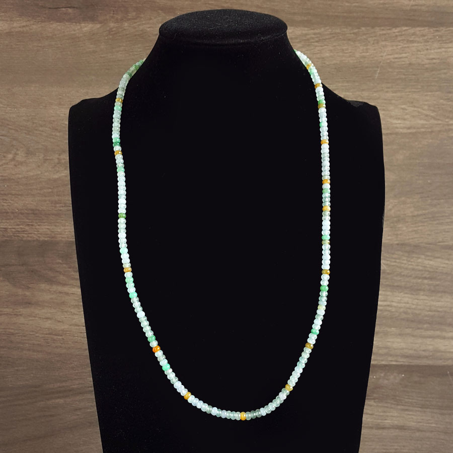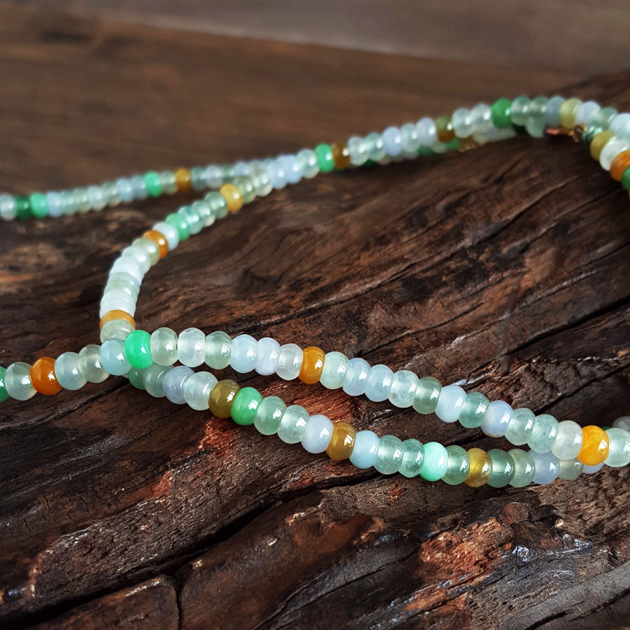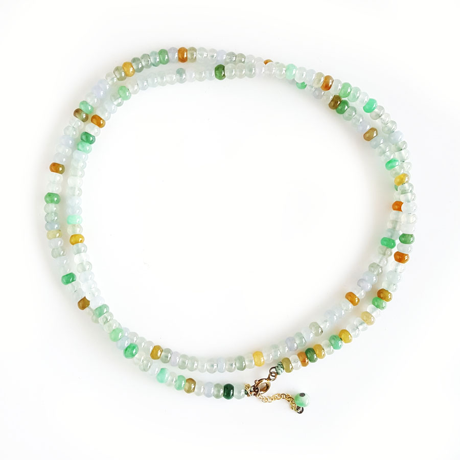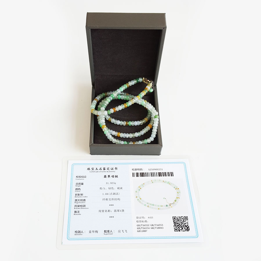 【天然正品】A货翡翠 天然无杂裂约3*5MM冰种多色翡翠算盘珠项链、多圈手链66CM 女士 现售价:2980!110925NJM22