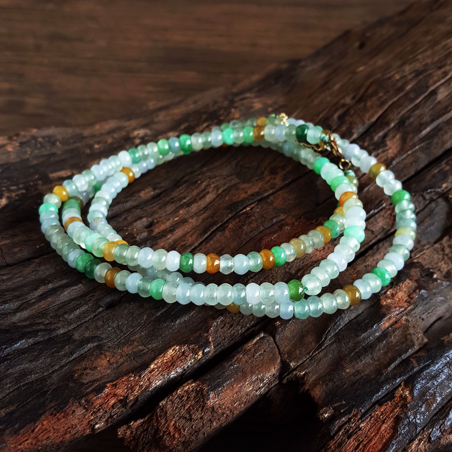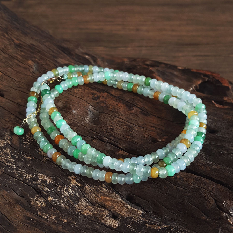 名称 | 天然无杂裂约3*5MM冰种多色翡翠算盘珠项链、多圈手链 |