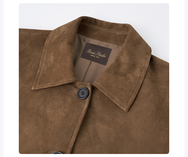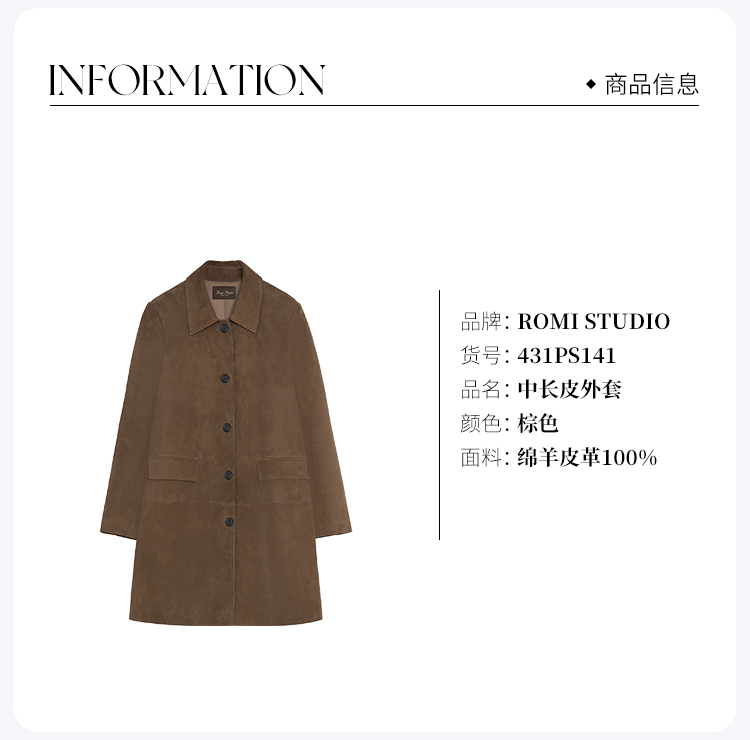 ROMI STUDIO“棕标甄选”进口绵羊皮绒面软糯翻领皮衣外套 431PS141