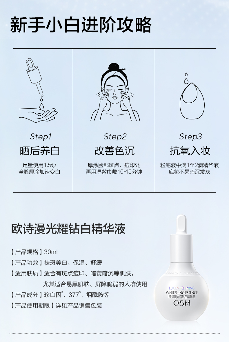 【到手90ml精华】欧诗漫珍白因精华液30ml(哑白款)赠:同款珍白因精华30ml替换装+同款精华7.5ml*4