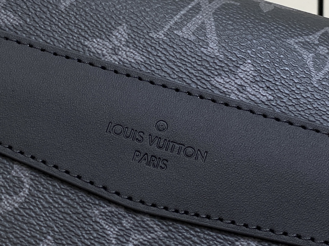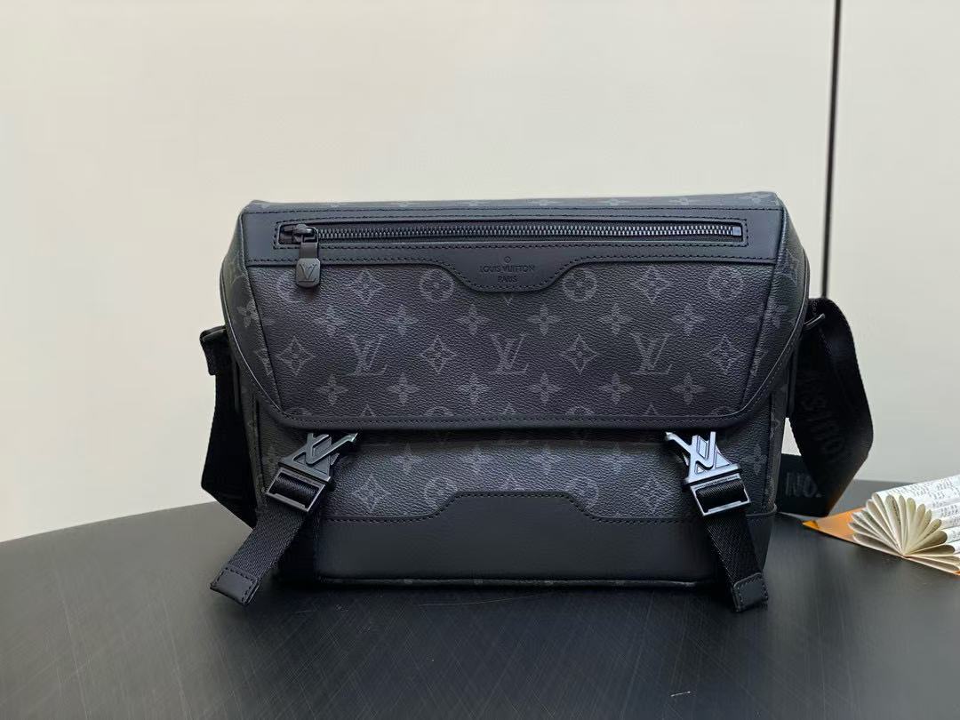 M12517黑花 男包邮差包系列 VOYAGER 小号邮差包 本款 Voyager 小号邮差包以 Monogram Eclipse 帆布塑造舒适便携构型,可轻松容纳平板电脑、充电器和其他日常所需。快拆式搭扣呈现 LV 字母,可调节肩带实现肩背和斜挎。尺寸:22.5 x 11 x 33 厘米。