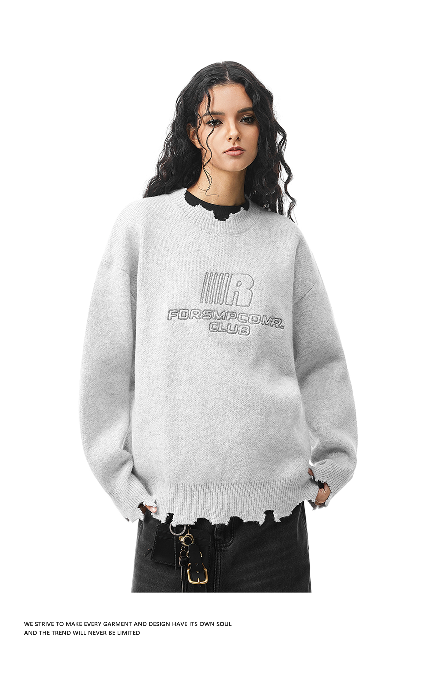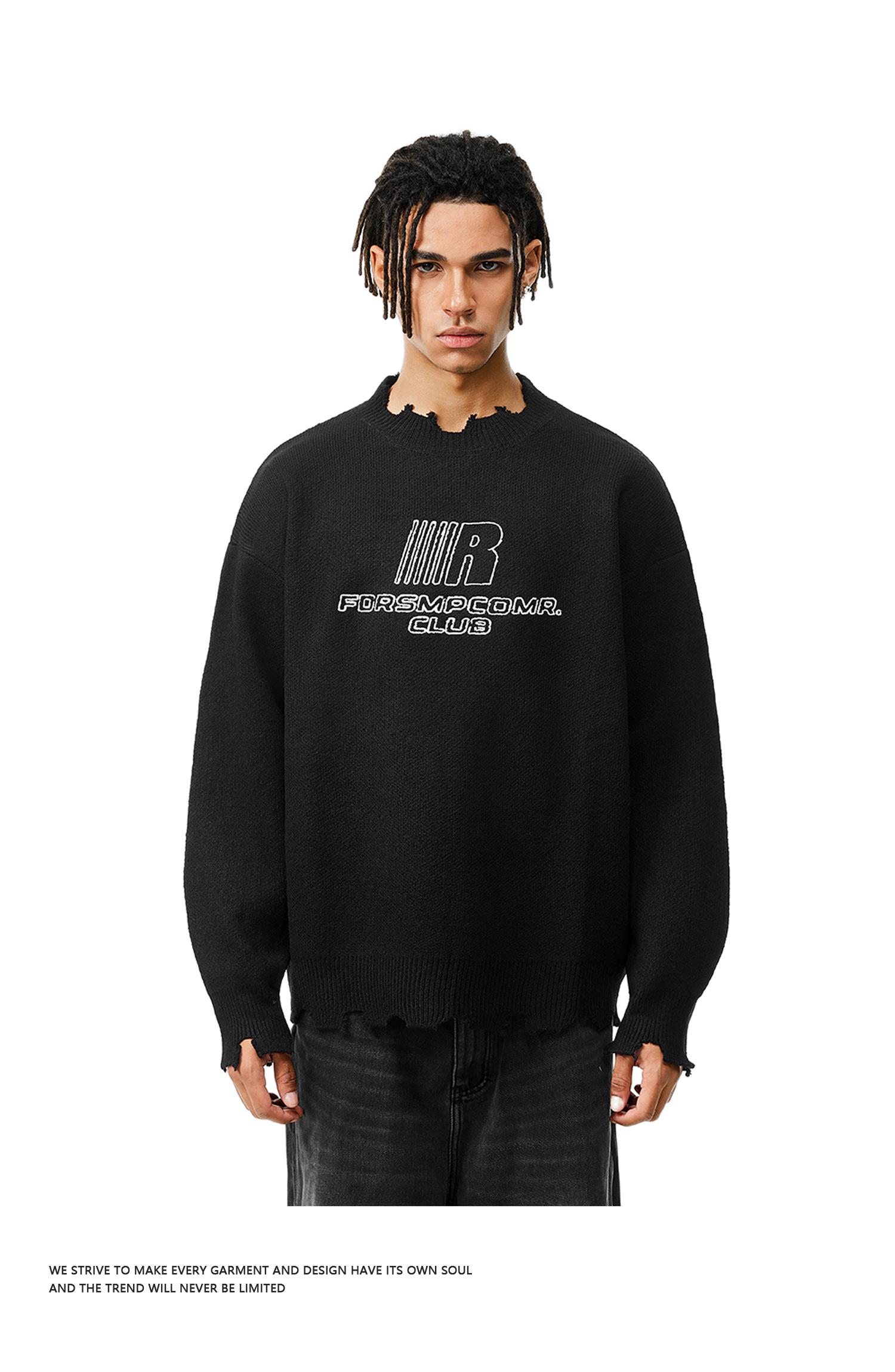 FDR官方店 R字镂空绣花毛衣男女秋冬季美式运动宽松情侣装上衣