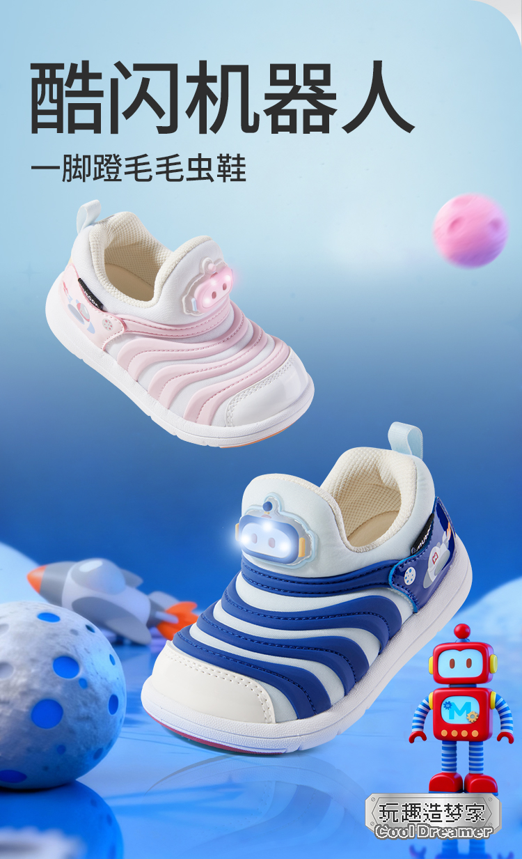 牧童儿童运动鞋男童2026春季新款闪灯机器人轻便女幼童毛毛虫童鞋