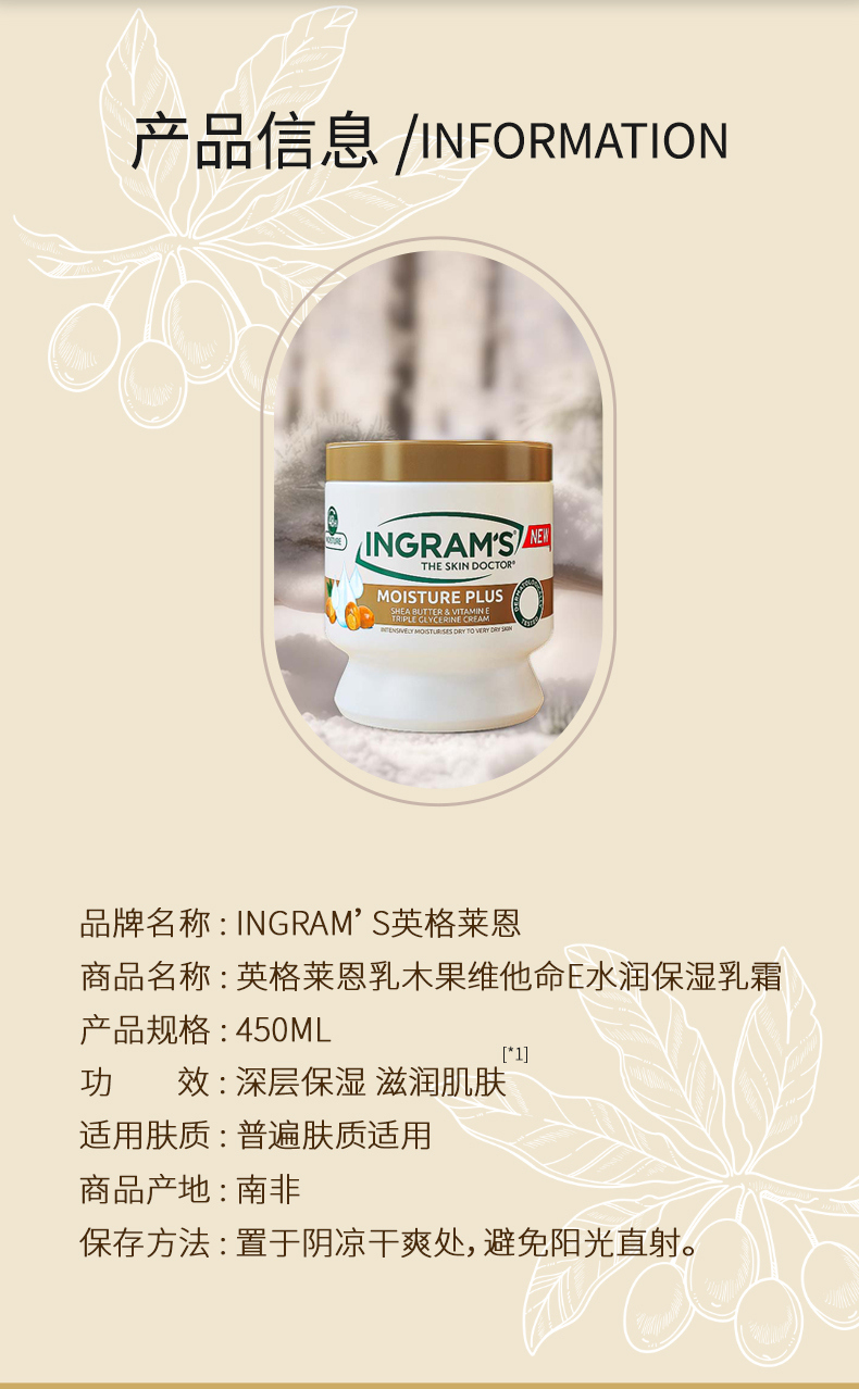 INGRAM'S 英格莱恩乳木果维他命E水润保湿乳霜450ml 商品图7
