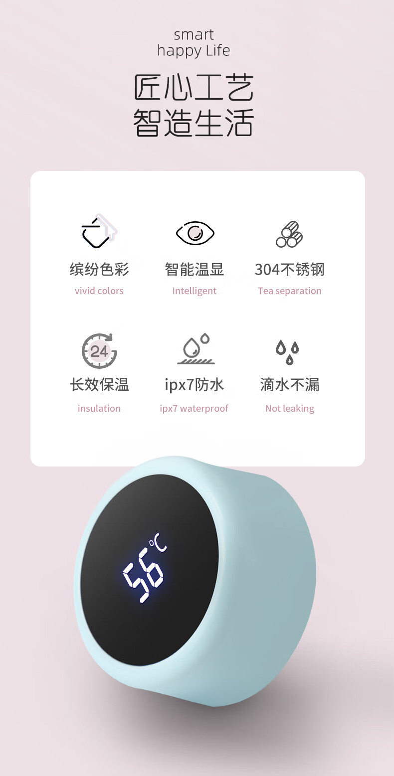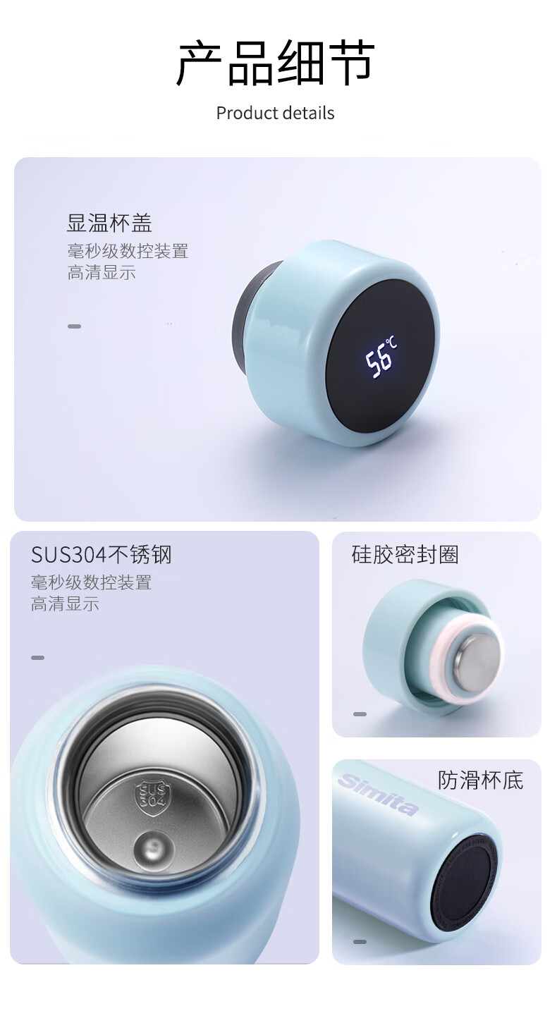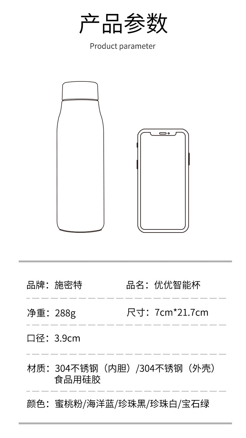 施密特(Simita)智能保温水杯男女士情侣大容量不锈钢水杯便携车载商务优1智能杯 MBW1005-038A