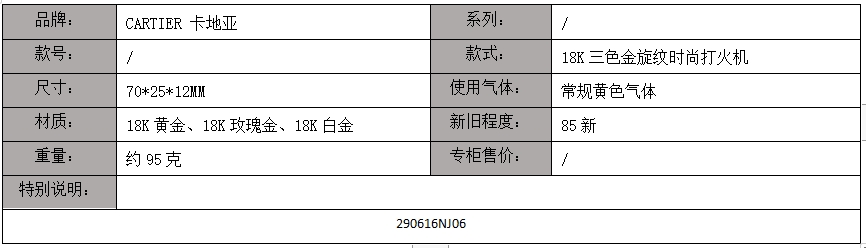 【85新】CARTIER 卡地亚 18K三色金旋纹时尚打火机 290616NJ06