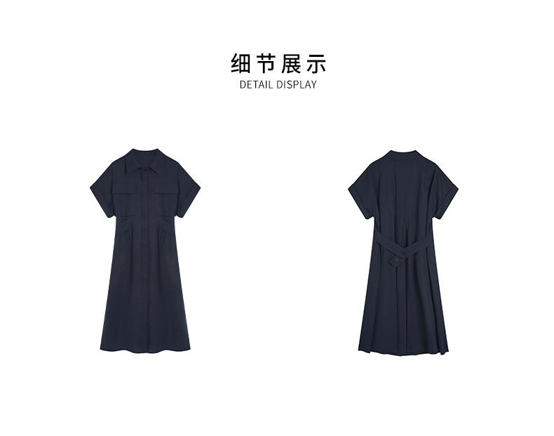 N°28 2025夏新款气质时尚女士休闲连衣裙翻领短袖中长裙遮肉显瘦裙子885252L599
