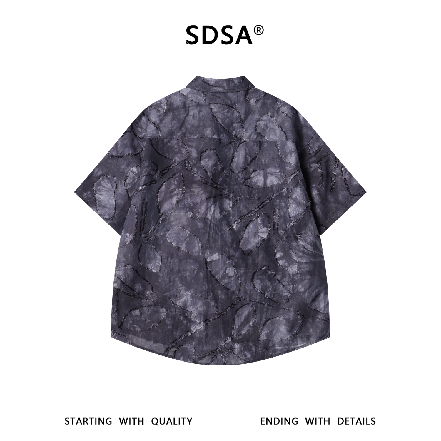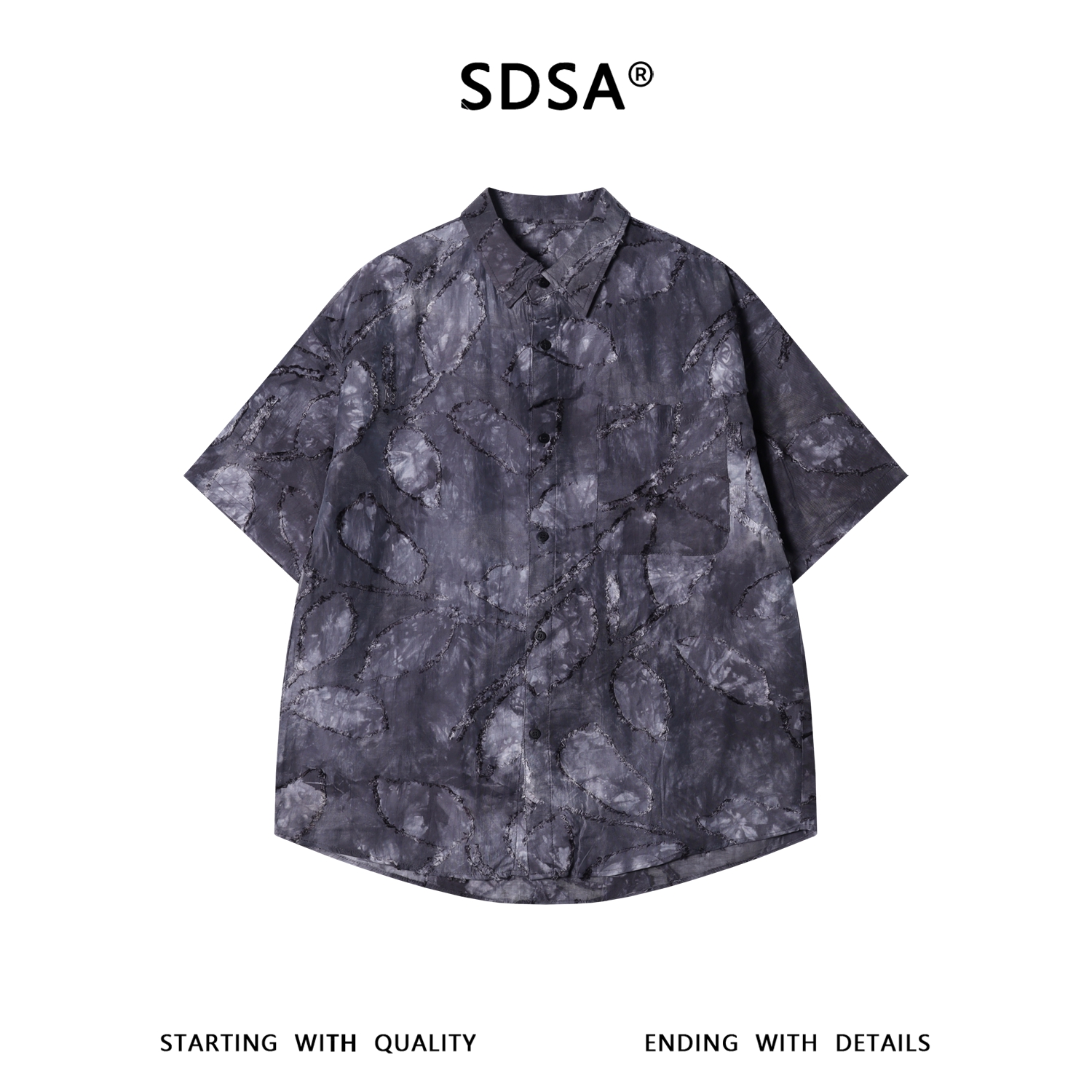 SDSA男装2026新款高贵轻奢潮牌扎染裁剪磨毛短袖衬衫百搭舒适上衣