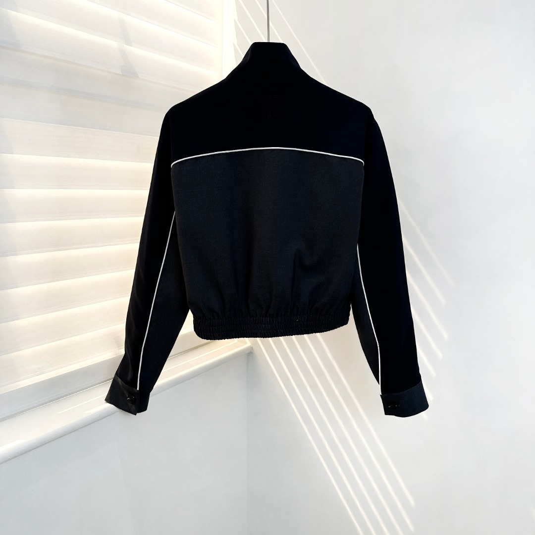 缪家SS25立领刺绣薇标长袖夹克外套