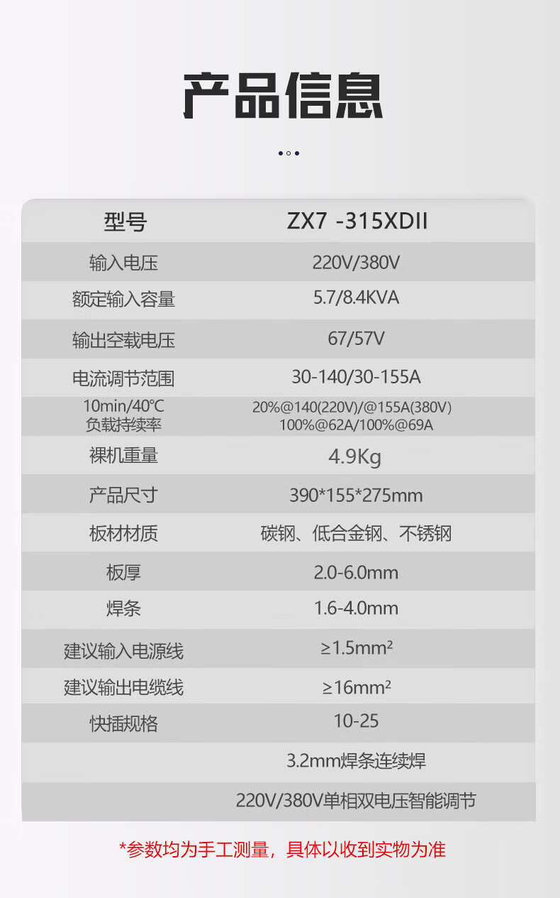 上海沪工 ZX7-315XD II电焊机3.2焊条长焊 220v 380v双电压不锈钢轻工业级焊机