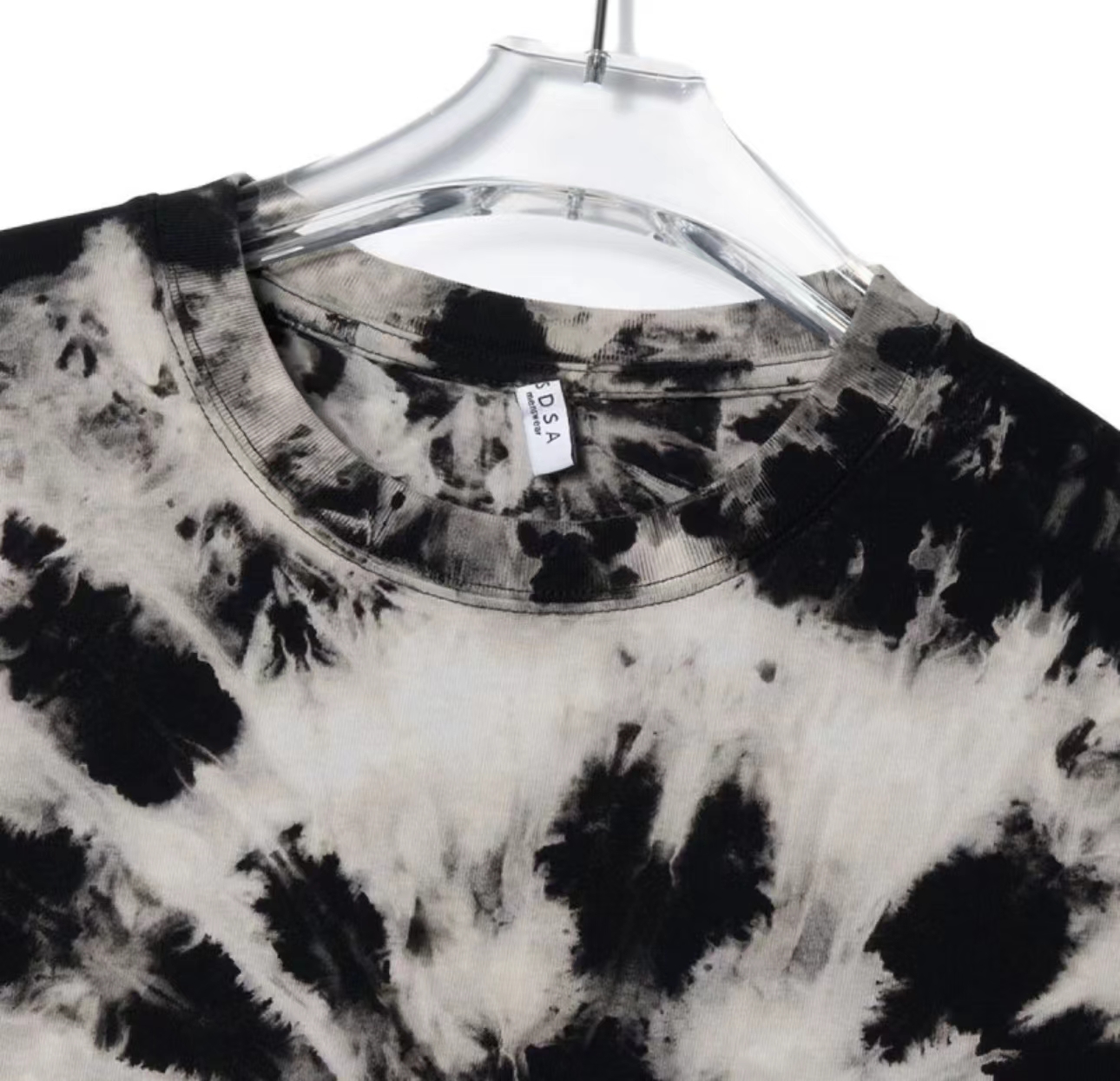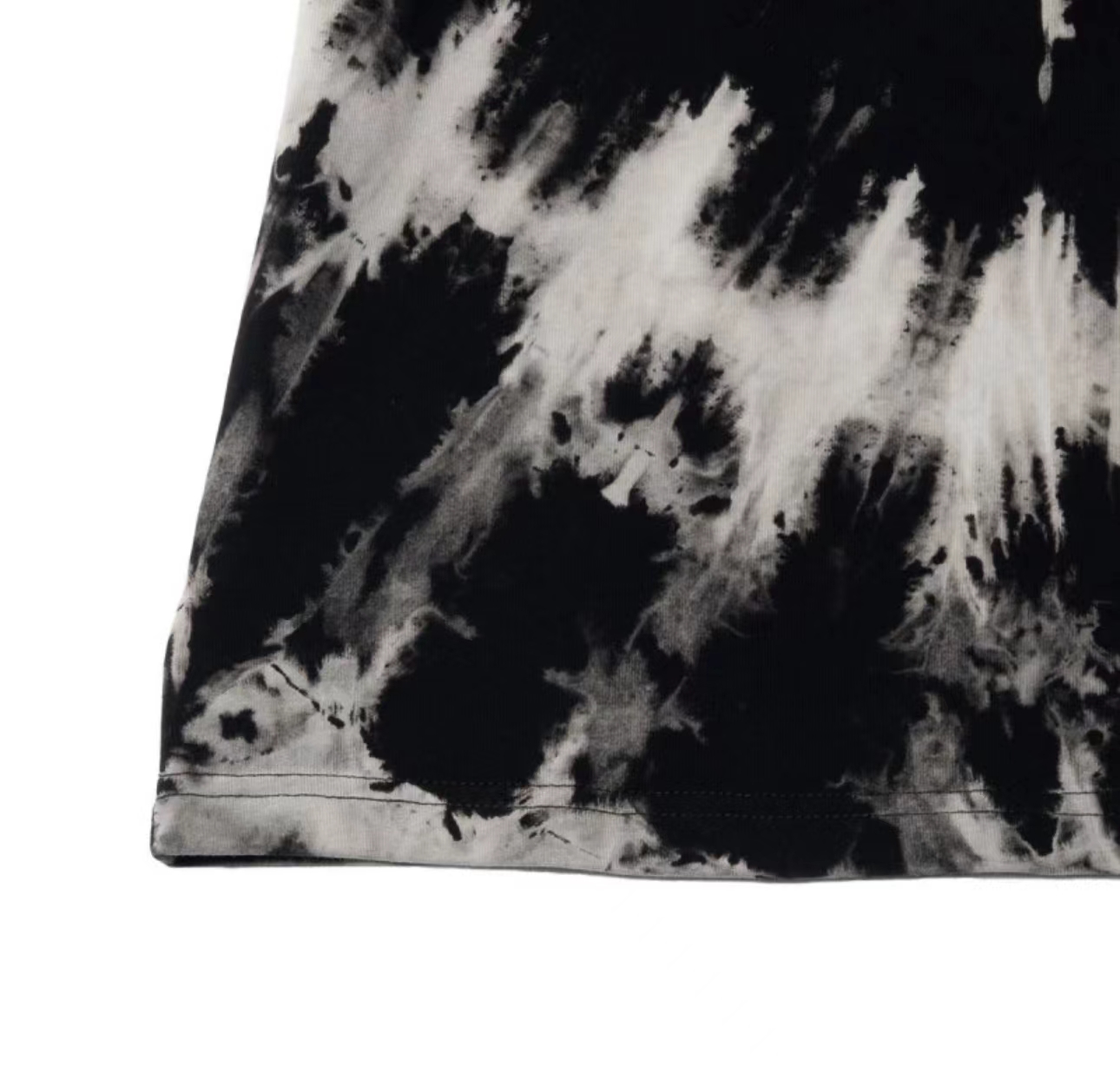 T2639夏季高级感新款扎染绒面印花字母圆领短袖T恤宽松潮流套头上衣