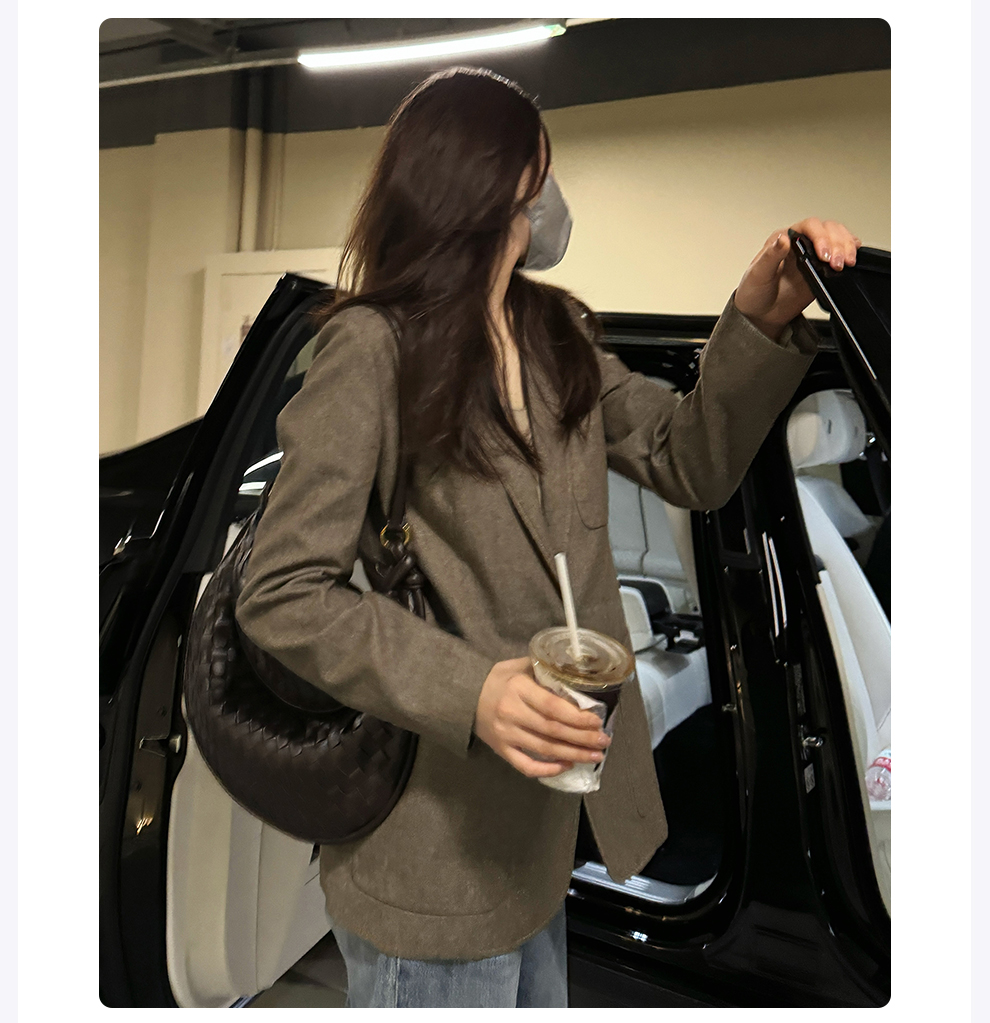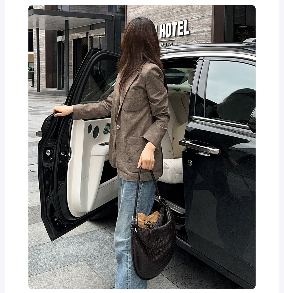 ROMI STUDIO“自我轮廓”肤感棉麻结肌理腰带修身西装外套 441W5009