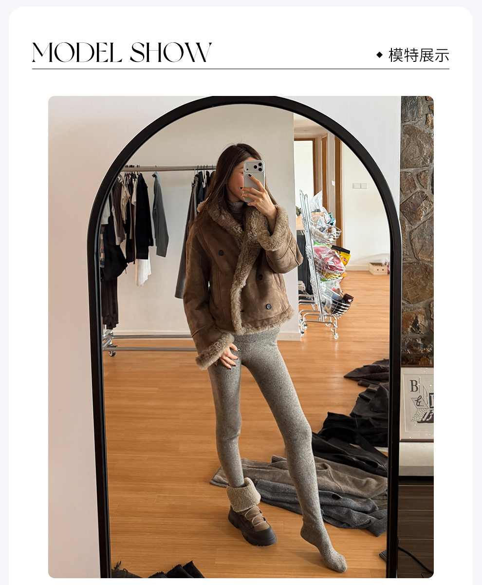 ROMI STUDIO细腻磨砂质感皮毛一体两穿蓬松毛绒面皮草 RWCWWG5132