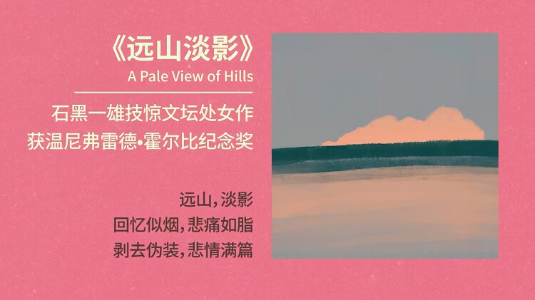 《远山淡影》是石黑一雄处女作,一部问世30多年仍在不断重印的名作。通过一个移居英国的寡妇对故土、故人的回忆,讲述了战后长崎一对饱受磨难的母女渴望安定与新生,却始终走不出战乱带来的阴影与心魔,最终以母女成功移民,而女儿自尽作为悲情结局。作品构思奇,叙述者通篇的回忆是模糊而可疑的,直至全书终,叙述者才忘记了伪装,读者也证实了猜想:叙述者是利用回忆做掩护,编织了一个他人的故事,企图通过他人的面具来讲述自己的故事,以减轻罪恶感。