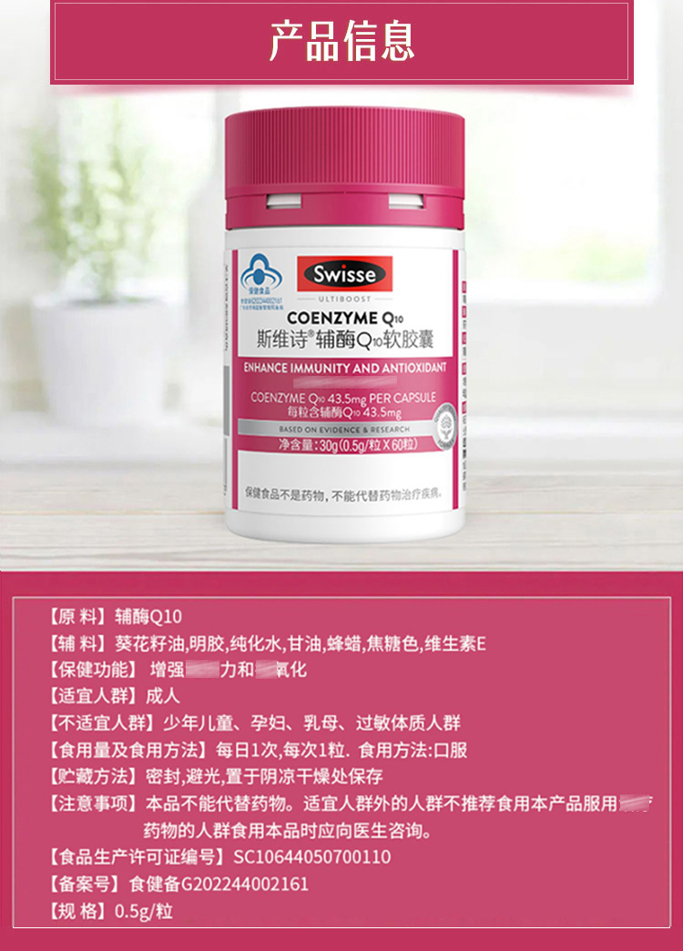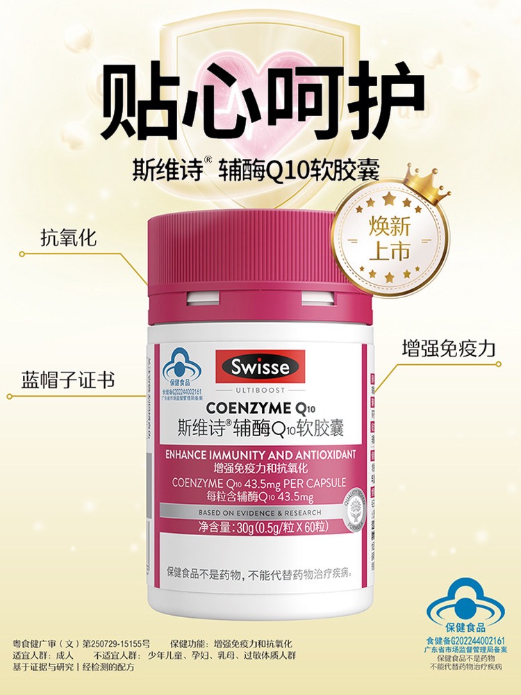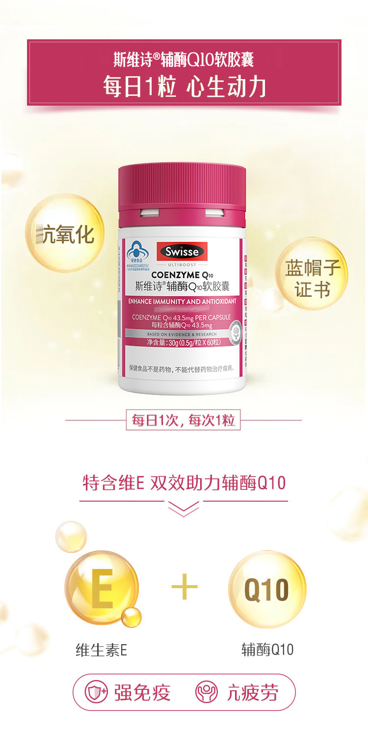 Swisse斯维诗辅酶Q10软胶囊60粒/瓶 增强免疫力和抗氧化 含维生素E 成人适用