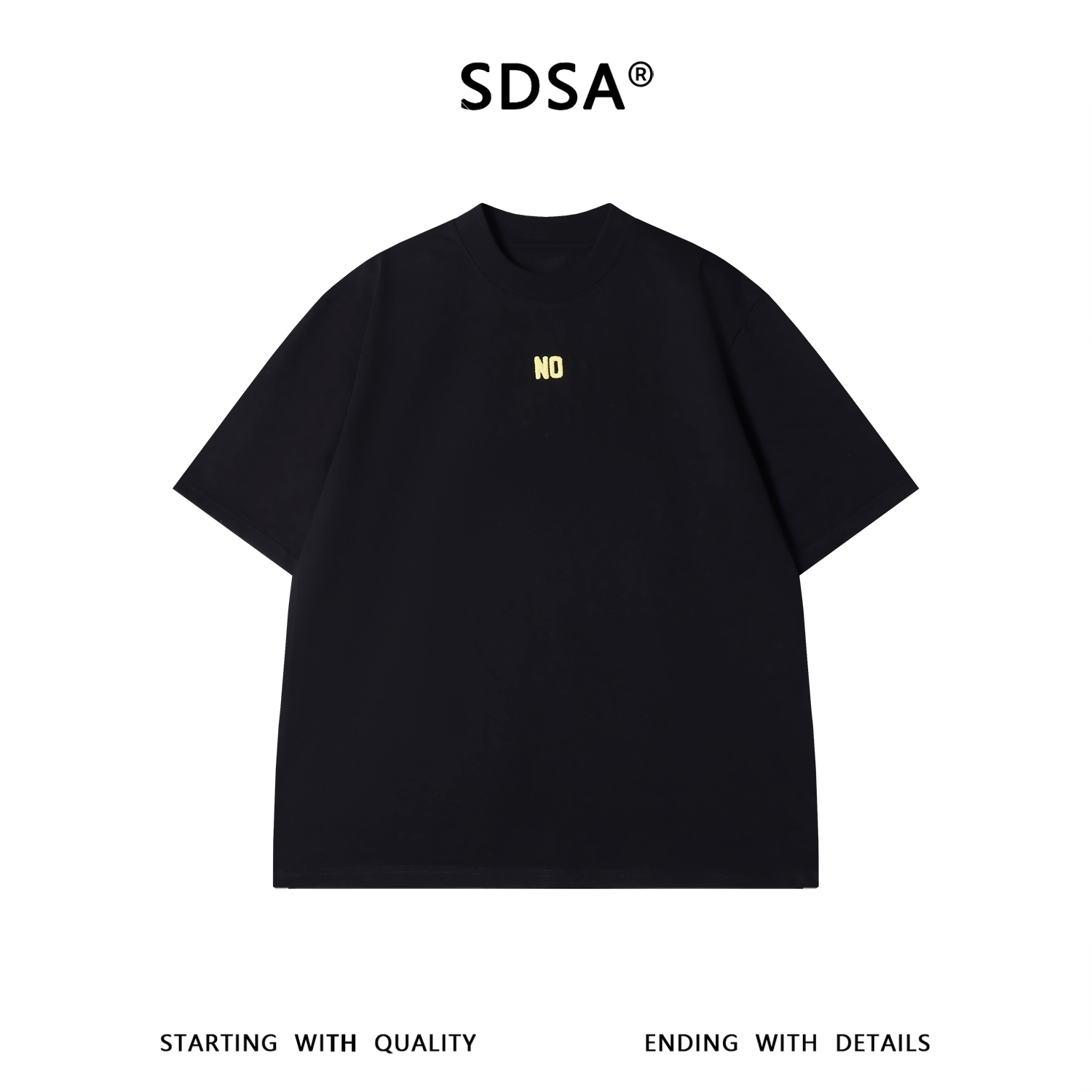 SDSA男装2026新款轻奢NO小字母刺绣短袖T恤宽松重磅圆领休闲上衣