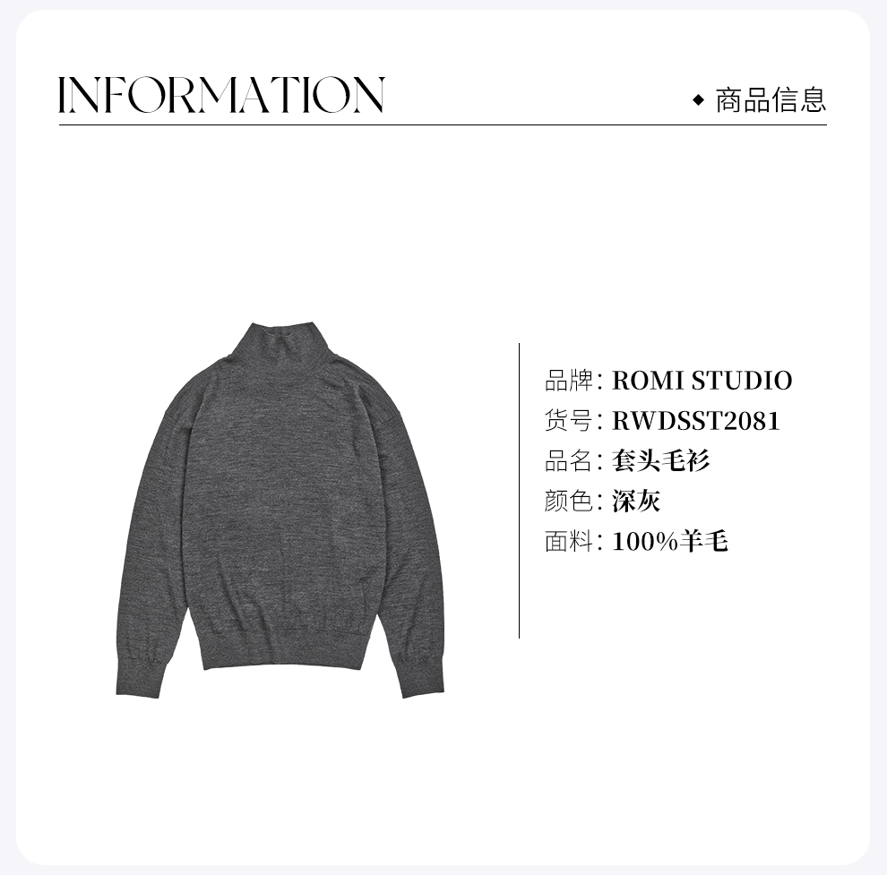 ROMI STUDIO100%羊毛织软糯不扎高领套头毛衫打底 RWDSST2081