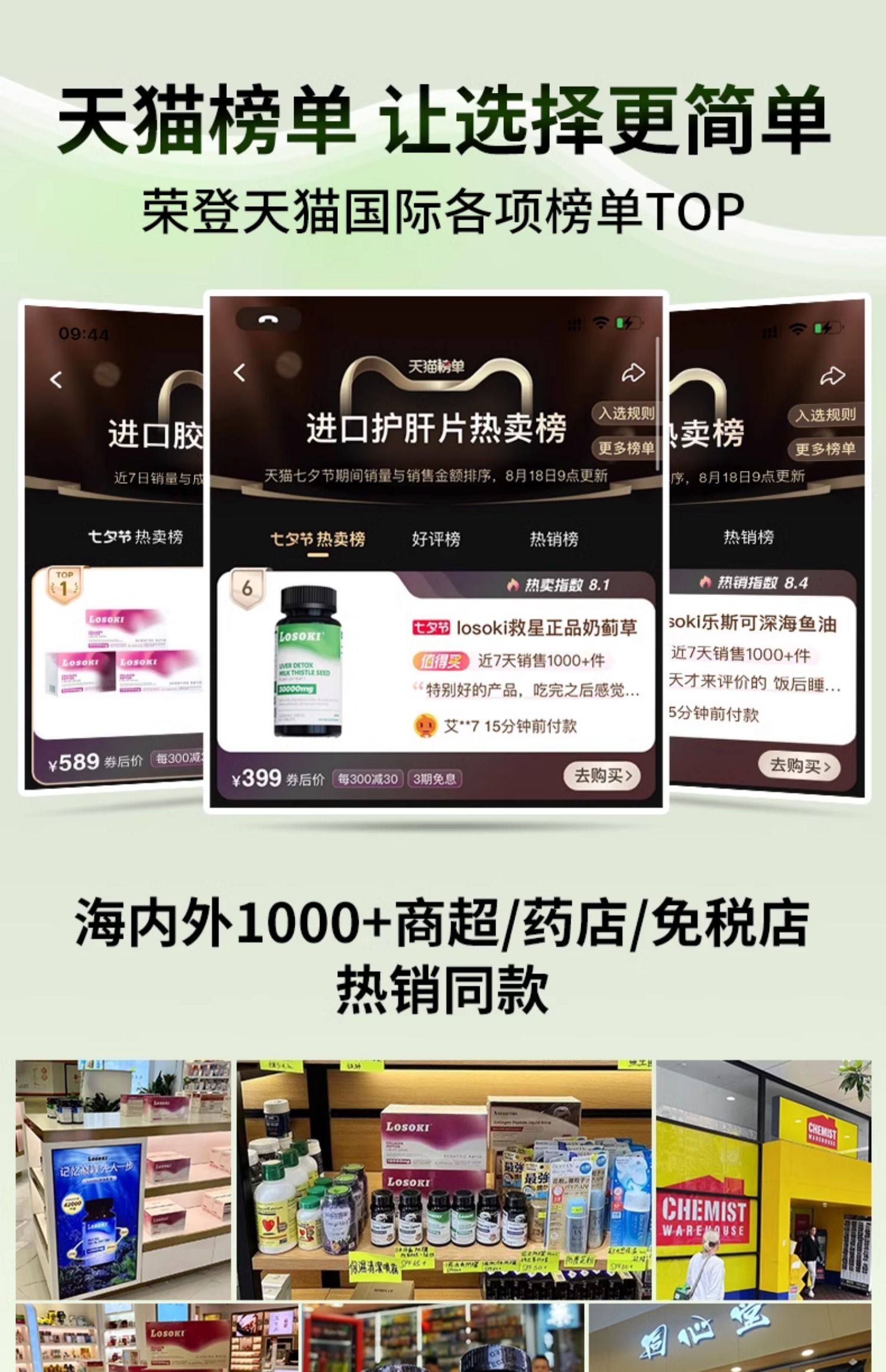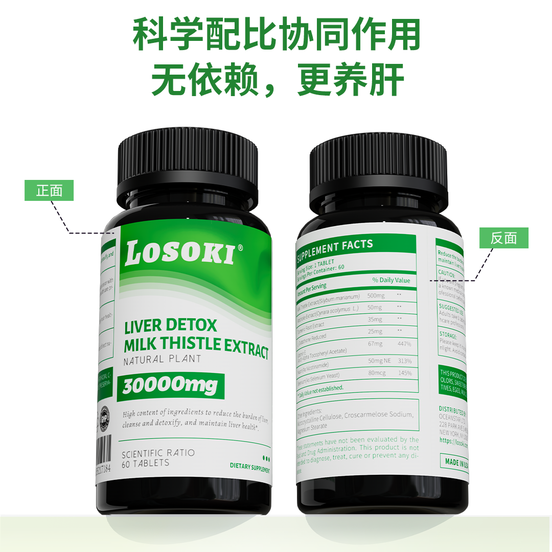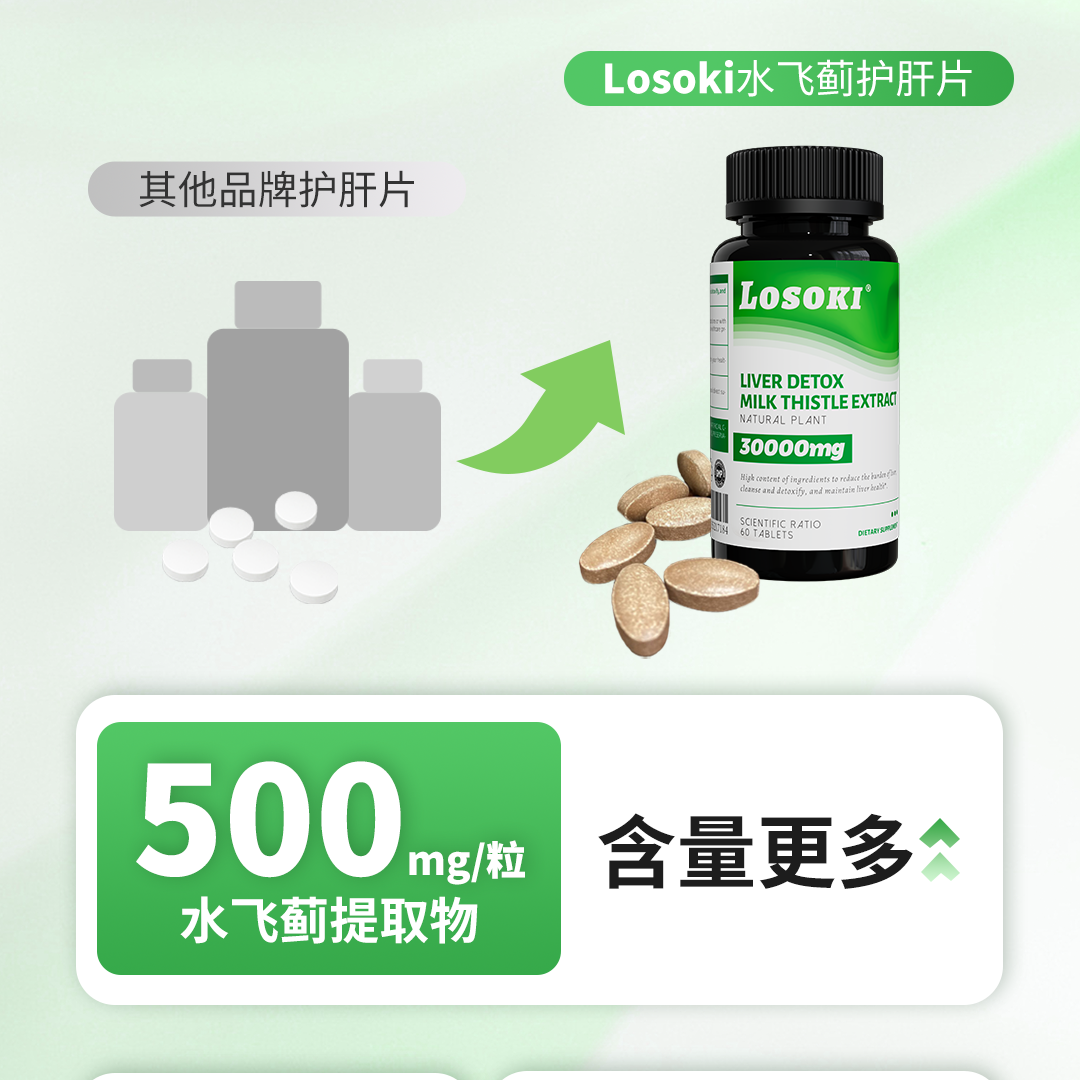 【2瓶装】美国乐斯可Losoki护肝片水飞奶蓟草男女保健熬夜救星