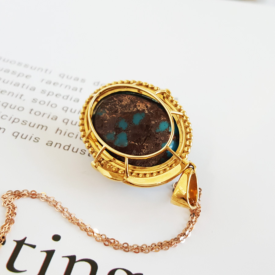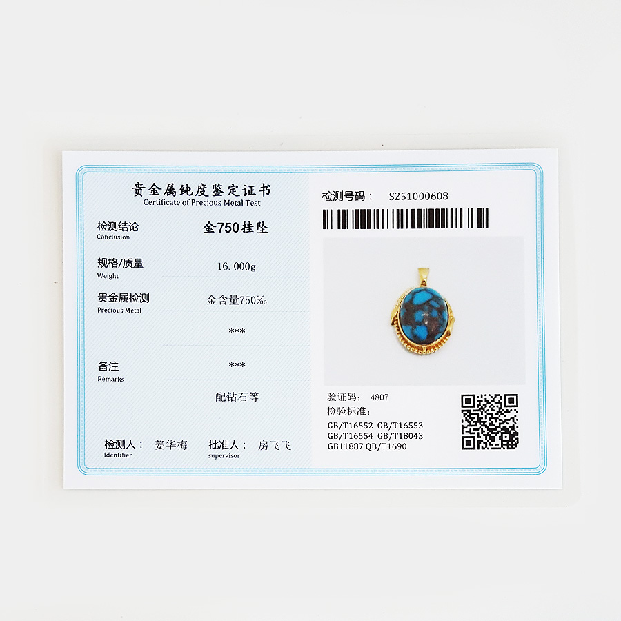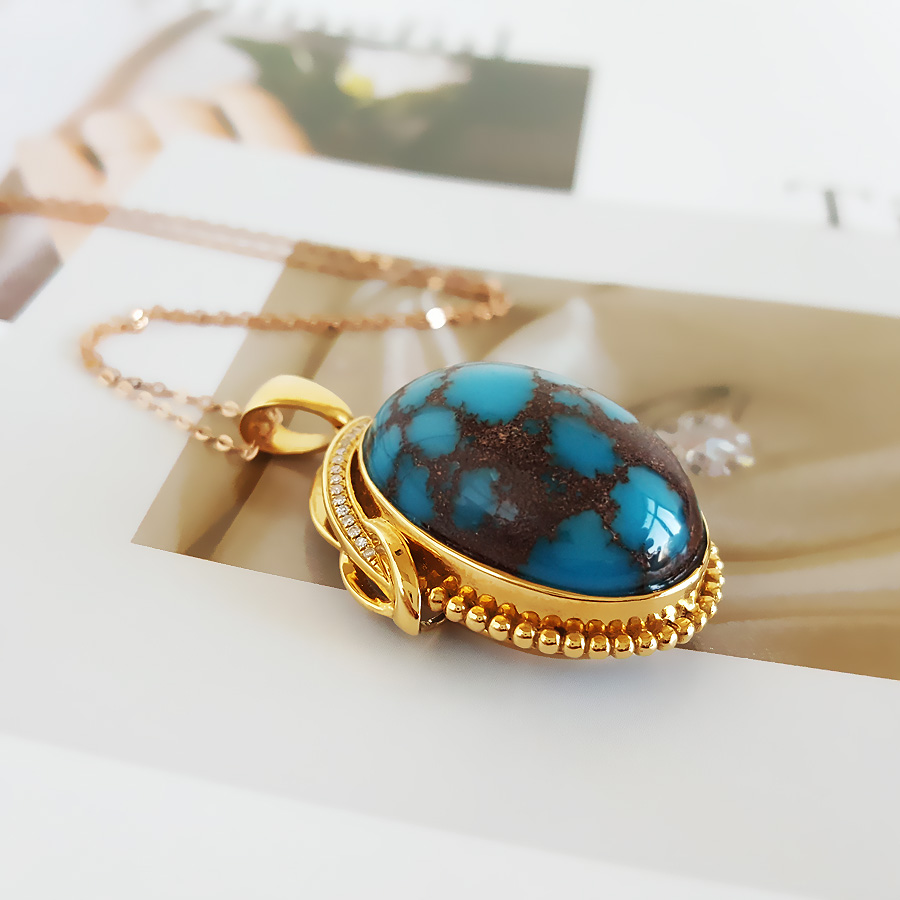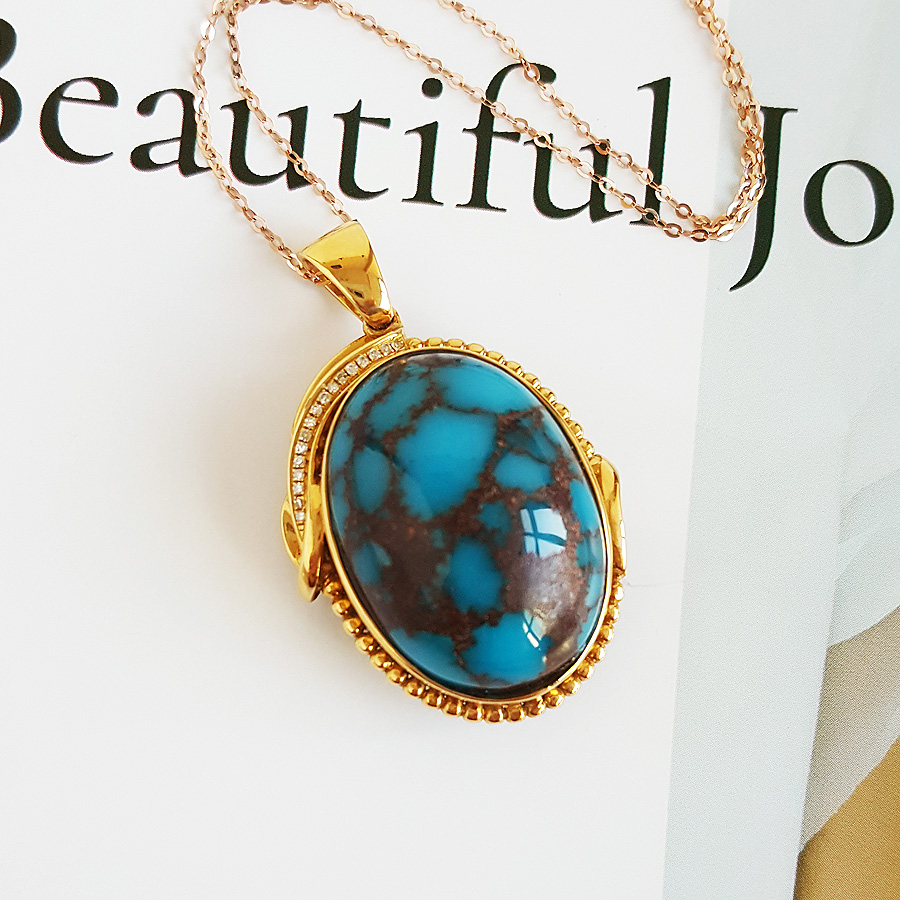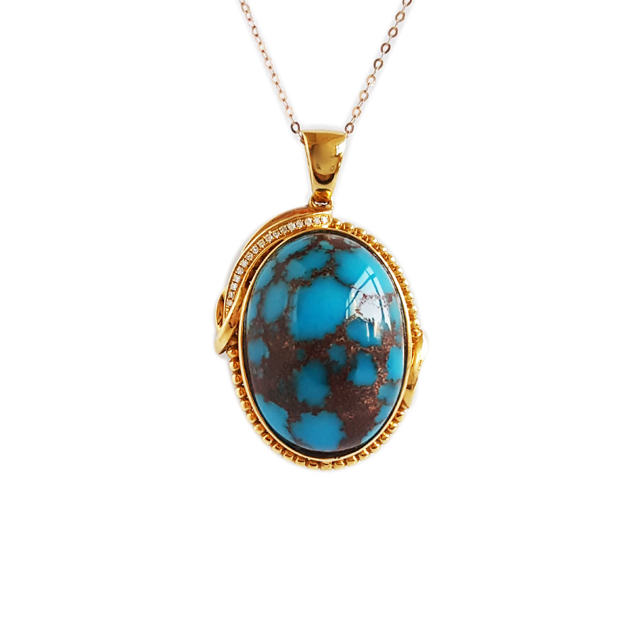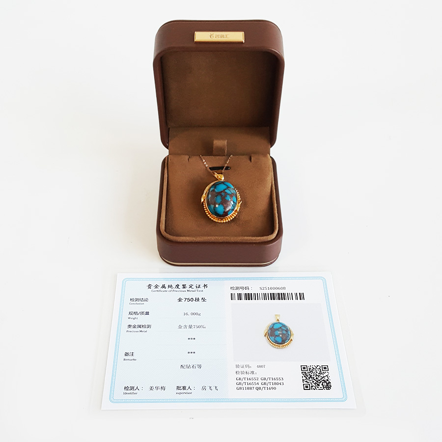 名称 | AU750黄金镶钻镶天然原矿高瓷高蓝铁线绿松石吊坠项链 |