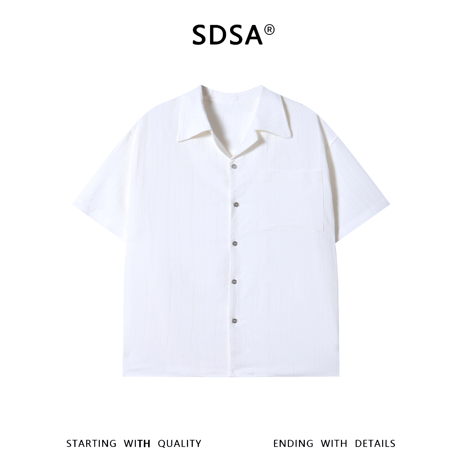 1255SDSA男装2026新款高贵轻奢肌理感竖纹纽扣短袖衬衫百搭简约上衣