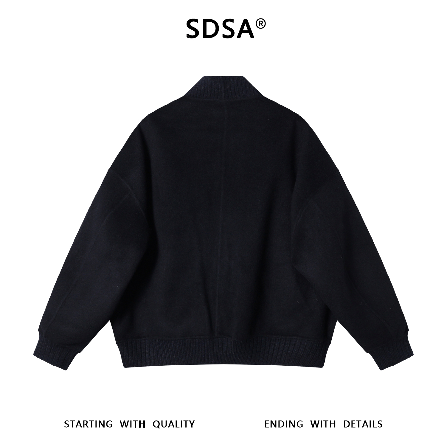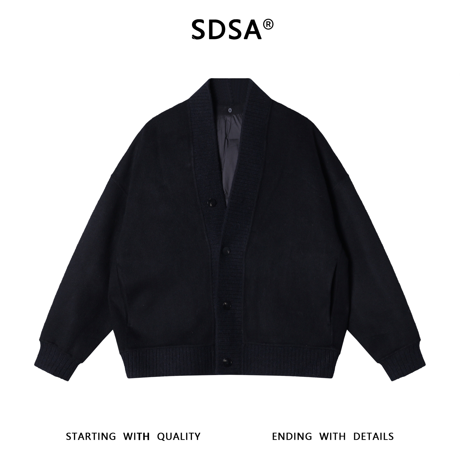 25-08SDSA男士秋冬新款痞帅男装潮牌纯色V领羊毛大衣羽绒服两件套百搭